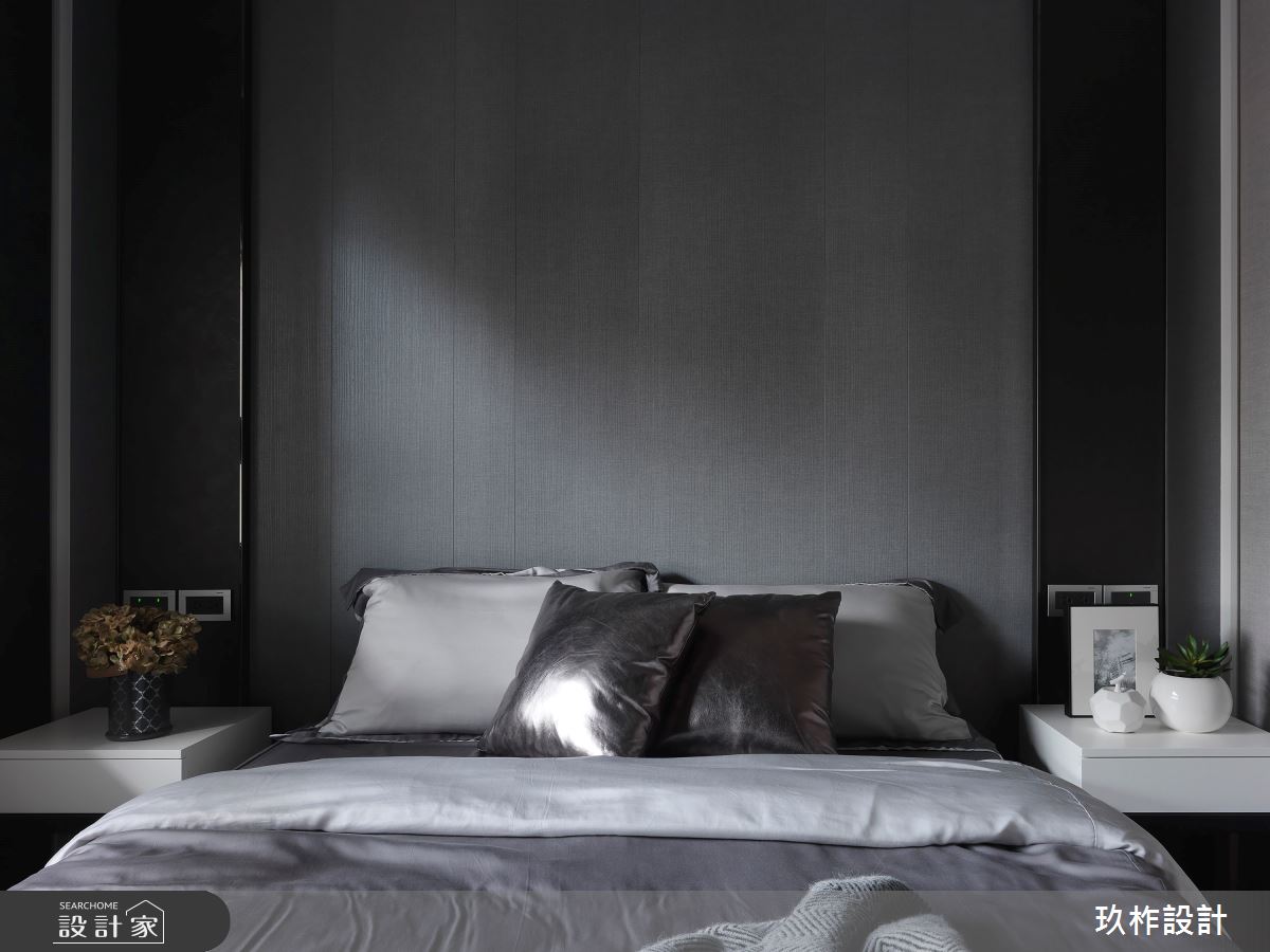 設計師在規劃這間 30 坪現代宅時,就將所處地理位置的山明水秀考量進去,因此即便以低彩度的灰白色系為基調,仍然在地板、立面適時加入木質感,提升整體的溫暖氣質,呼應周遭環境的自然氛圍。客餐廳採取開放式設計,加上在電視牆與餐廳主牆的黑鏡裝飾,放大了整體的空間感,同時充沛自然光也可以凸顯不同材質的紋理,讓灰階的空間能帶有巧妙的視覺變化。收納方面,除了自玄關一路延伸至電視牆的收納櫃以外,餐廳鏡面牆的後方也設置儲藏室,大幅增加室內機能性;書房也透過床鋪下方、床頭櫃等收納空間,保持居家的簡潔感。主臥藉由金屬線條的光澤,襯托床頭牆的高雅灰,配合床尾的質感更衣室與衛浴空間,令人擁有星級飯店般的舒適。