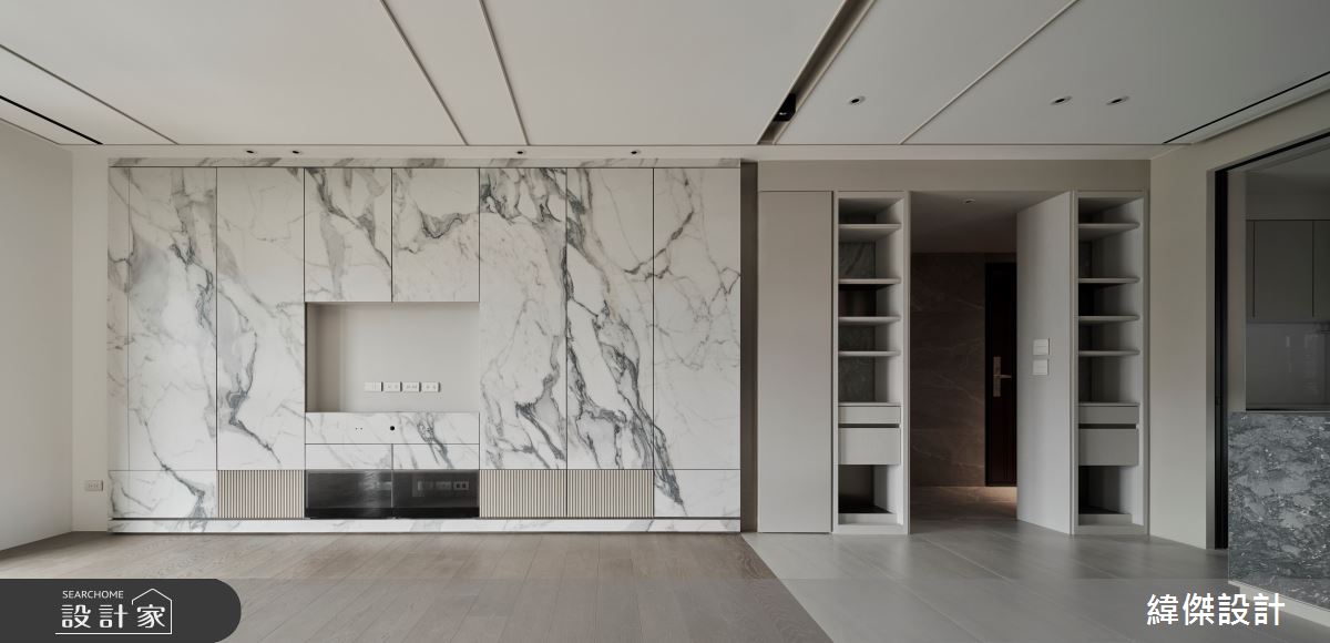 由緯傑設計精心規劃的22坪兩房住宅空間,家庭成員一共有2位大人、1位小孩。因應屋主需求,設計師運用現代風作為主軸,搭配大理石、薄板磚、鍍鈦,打造全家人的夢想家居。