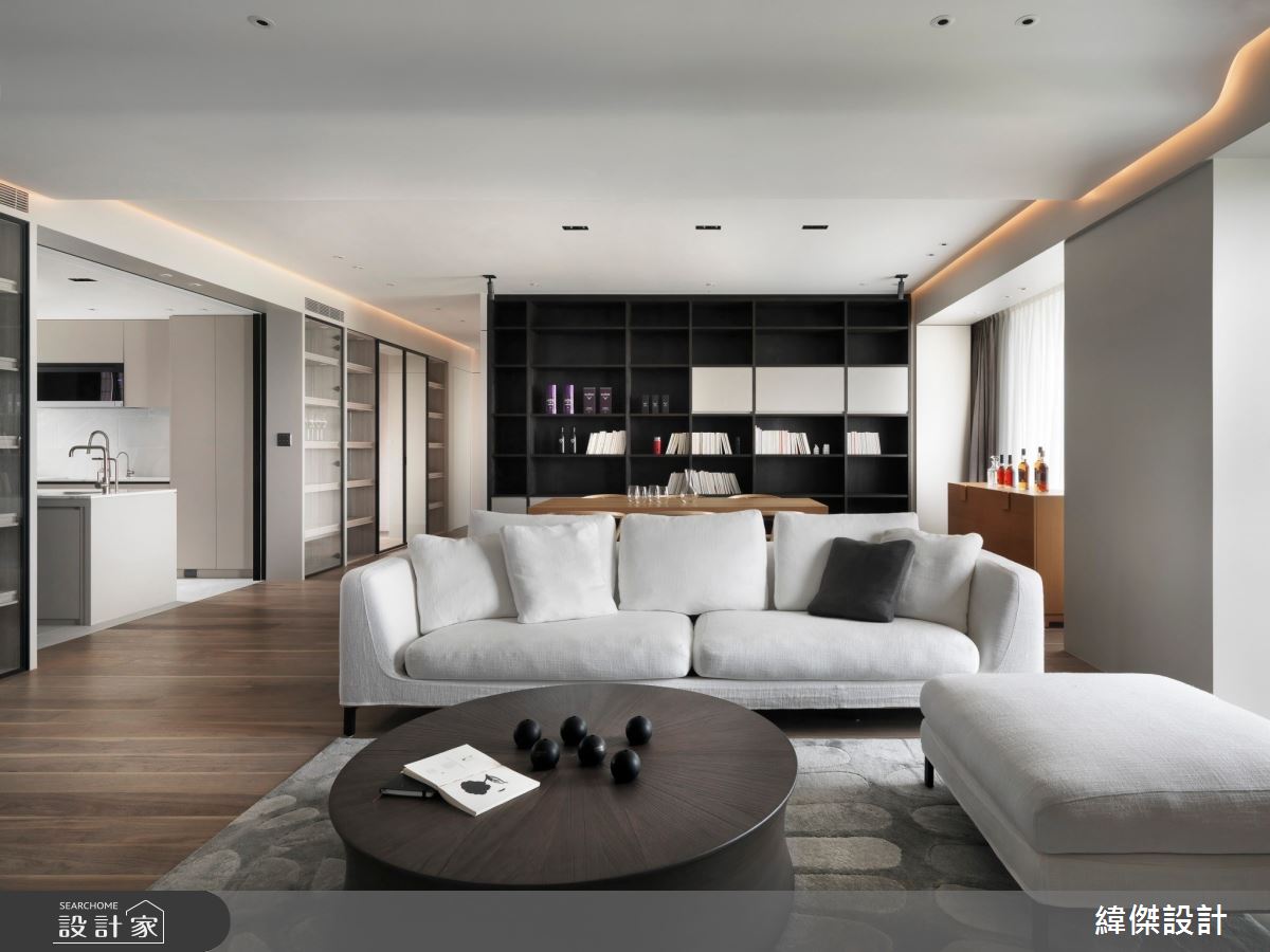 由緯傑設計精心規劃的50坪三房住宅空間,家庭成員一共有2位大人、2位小孩。因應屋主需求,設計師運用現代風作為主軸,搭配乳膠漆、木地板、大理石、鐵件、茶玻、鍍鈦金屬、木作貼皮、烤漆、賽麗石、石材、長虹玻璃、壁布,打造全家人的夢想家居。