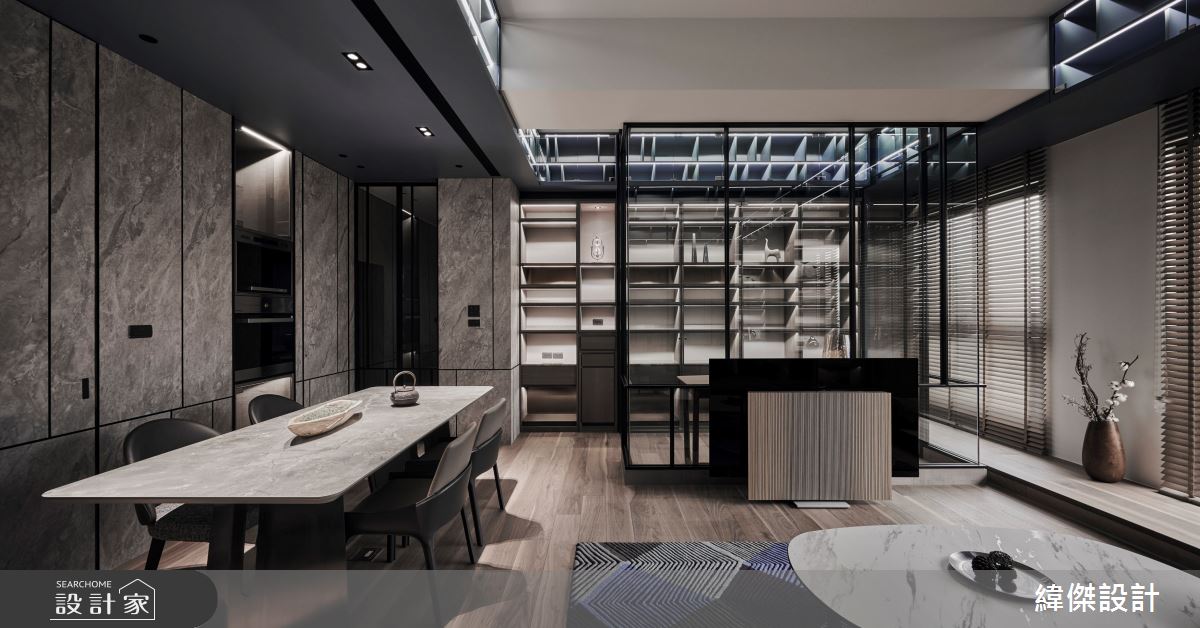 來自緯傑設計的50坪奢華風住宅案,是一間單層中古屋(5~15年)的三房格局,設計師藉由建材以木地板、鐵件、石材、木皮的搭配應用,實現一家人的理想生活。