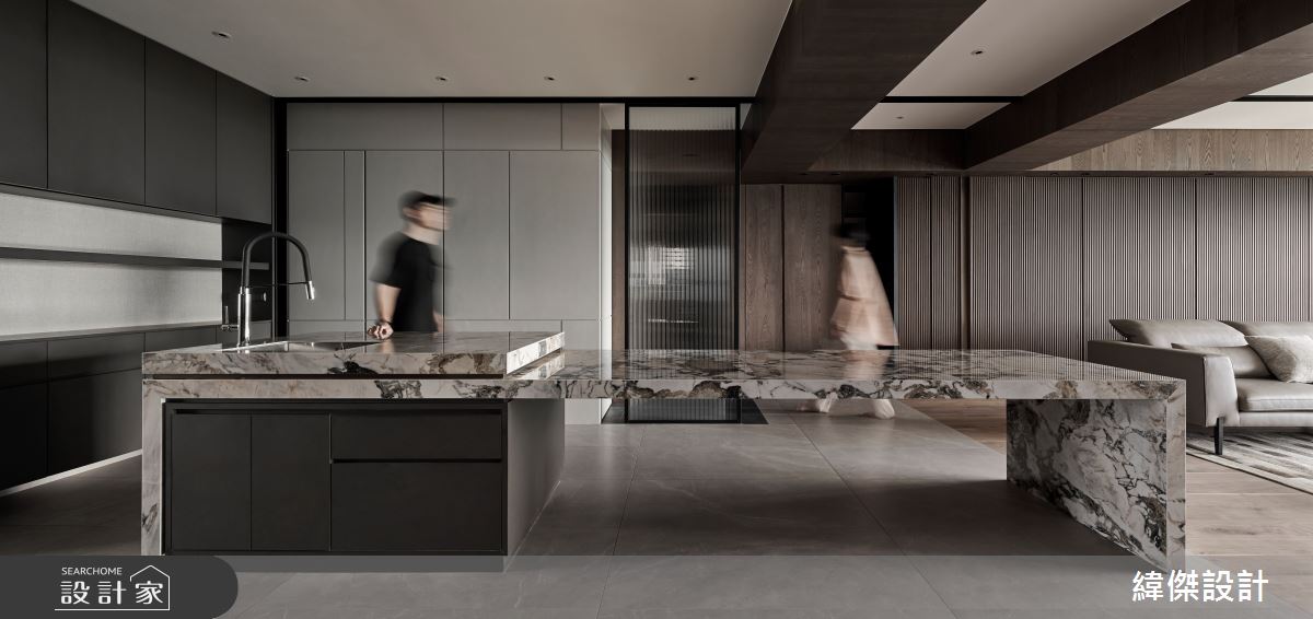 來自緯傑設計的50坪現代風住宅案,屋主一家人共有2位大人、2位小孩,是一間單層新成屋(5年以下)的三房格局,設計師藉由建材以藝術塗料、海島型木地板、鐵件、茶玻、鍍鈦金屬、木作貼皮、烤漆、鋼刷木皮、大理石、長虹玻璃、壁布、薄板磚、砂玻、玻璃的搭配應用,實現一家人的理想生活。