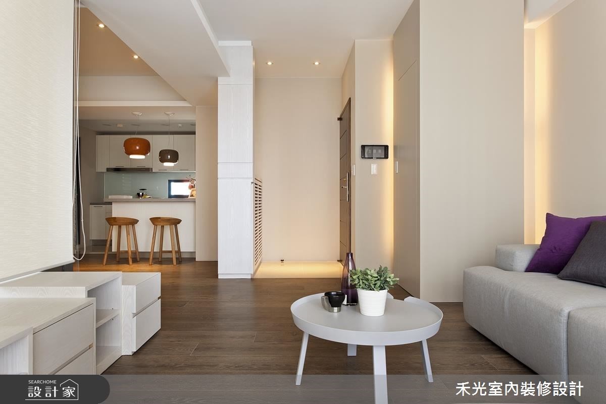 本案為禾光室內裝修設計的12坪北歐風預售屋設計作品,格局為單層一房的居住空間。居住成員包含1位長輩。全室建材的搭配,應用超耐磨木地板、灰鏡、系統板材,展現溫馨的居家氛圍。