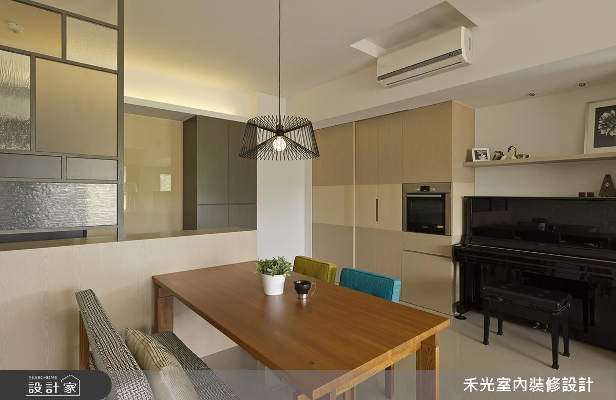 甜蜜的二代宅,住著恩愛的夫妻和兩位可愛的小朋友,女屋主希望在下廚的時候可以看見公共區域的家人互動;男屋主希望在辦公時依然可以陪伴小朋友長大,就來看設計師如何打造出符合屋主期望陪著孩童長大的二代居宅! 位於台北市松山區超過 15 年的老屋,36 坪的空間規劃出 3 房 2 廳的空間,將原本老舊陰暗的屋況徹底改造,符合一家四口的舒適、溫馨的療癒宅邸;沿著牆面規劃的玄關處,大型的鞋櫃滿足了一家人的收納機能,淺色系的木紋讓人一進門,便感受到溫潤的感覺;沉穩的木地板區隔出開放式的公共空間,搭配溫雅的芥末綠主牆,讓空間注入了療癒的意象。 電視牆以各種尺寸及不同色系的櫃體,錯落交疊形成另一幅多功能的收納及展示牆面,沙發同時呼應電視主牆的顏色,讓家的配色成為居家空間的共鳴;客廳窗邊的閱讀空間,讓爸媽在辦公時依然可以陪伴小朋友;廚房區是公共空間的中心位置,串連著客廳與餐廳,讓女屋主在烹飪時可以看見家人在客廳的互動,安心又甜蜜的陪著家人成長;特別的是在用餐區的廊道上規劃了一道書牆,讓餐桌同時也是書桌,提供全家人閱讀的寬闊場域,也陪伴小朋友養成閱讀的良好習慣;起居空間以溫潤又療癒的氛圍打造,構築出舒適、舒眠的臥室。 小編的最愛 餐桌即是書桌的概念,相信很多人都很喜歡在烹飪時,看著小朋友放學後在此寫作業、看書,媽媽們也會感受到此安心又貼心的設計理念,廊道上的書牆呼應著壁面上的台灣地圖,不僅加強小朋友的地理概念,還可與家人暢談遊玩的回憶。