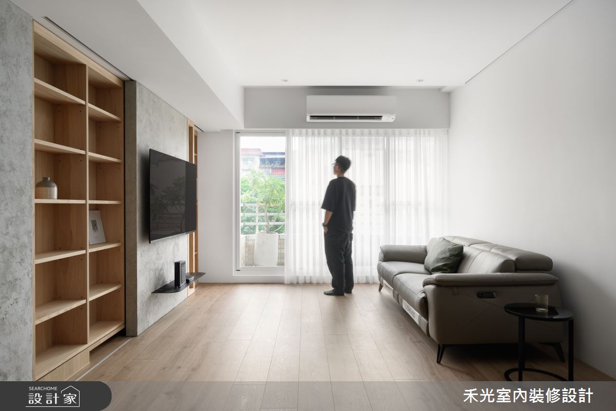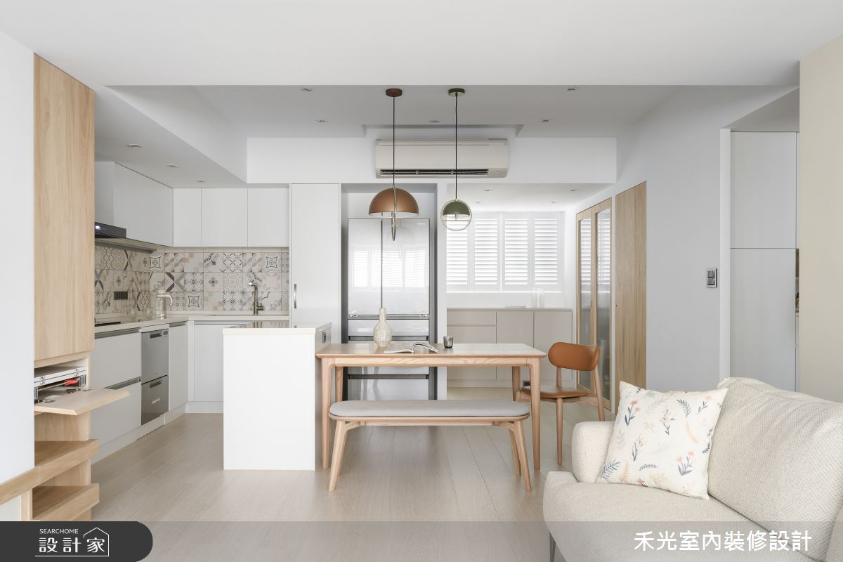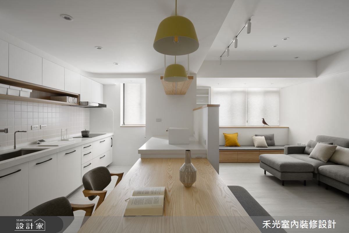 來自禾光室內裝修設計的23坪簡約風住宅案,屋主一家人共有2位大人,是一間單層老屋(16~30年)的兩房格局,設計師藉由建材以超耐磨木地板、石英磚/拋光石英磚、鋼刷木皮、系統板材、人造石、烤漆鐵件、鋁框門、長虹玻璃、栓木的搭配應用,實現一家人的理想生活。