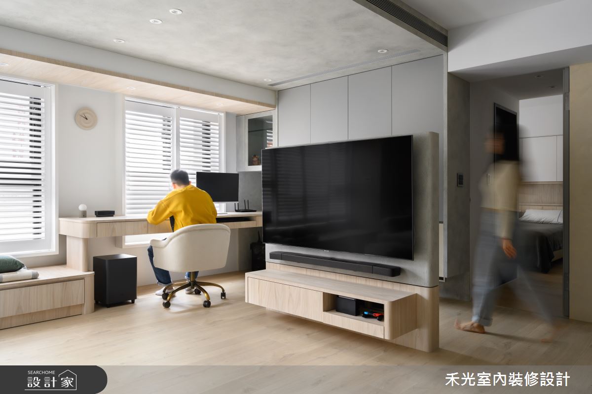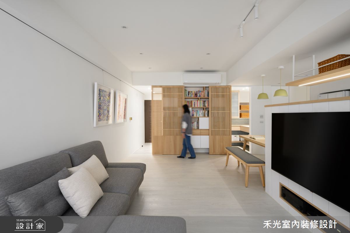 禾光室內裝修設計以美耐板、系統板材、烤漆鐵件、鋁框門、賽麗石、長虹玻璃、竹炭漆、特殊塗料、鋼刷木皮、超耐磨木地板的搭配應用,呈現日式北歐風居家氛圍,將此間23坪、兩房、單層、新成屋(5年以下)打造成舒適愜意的家庭空間,完成2位大人全家人的夢想之居。