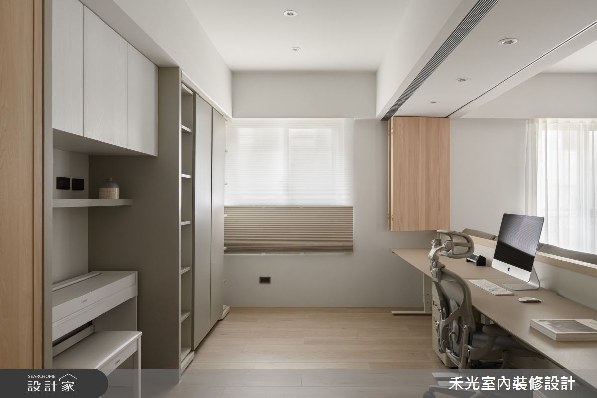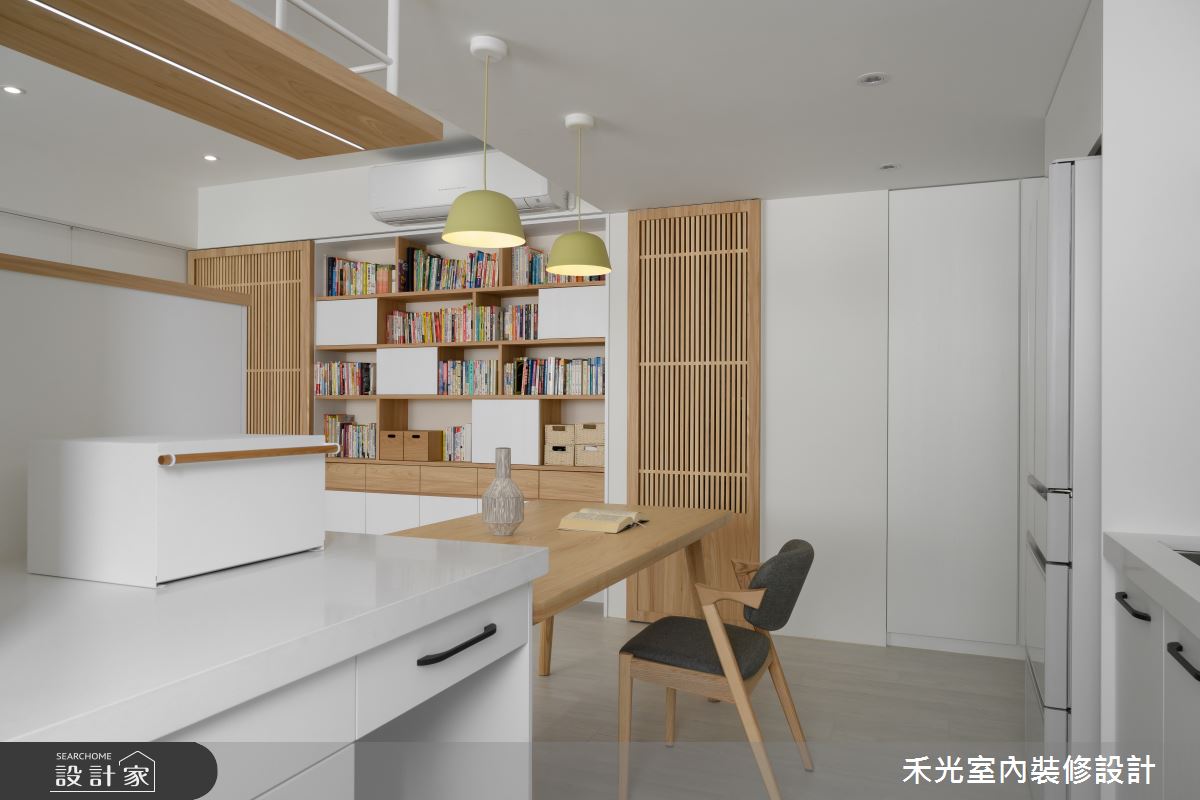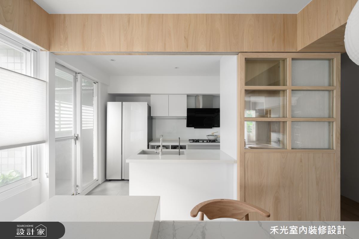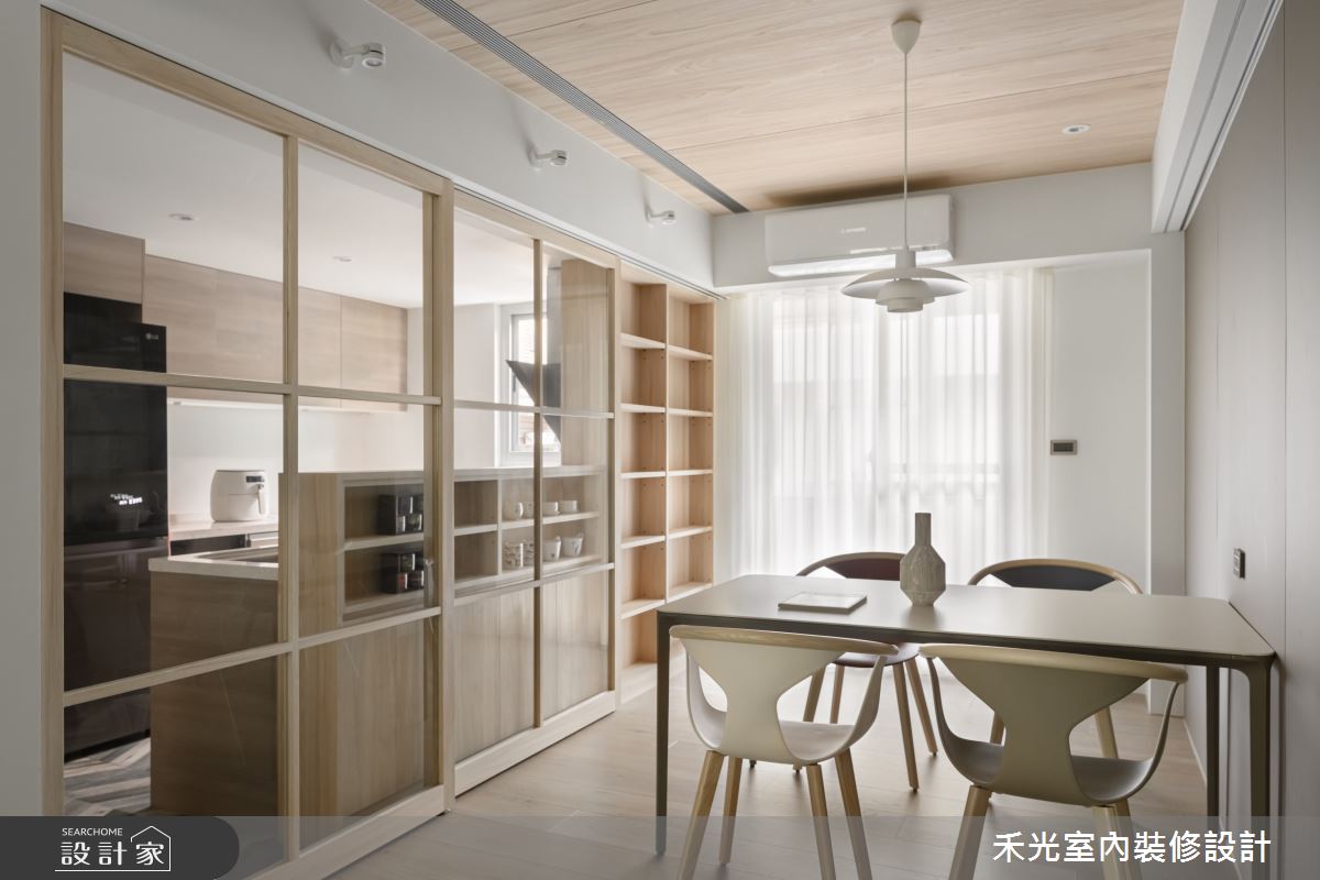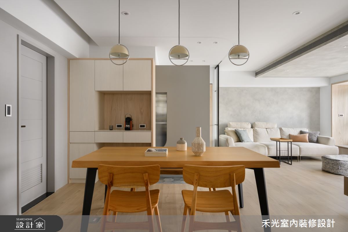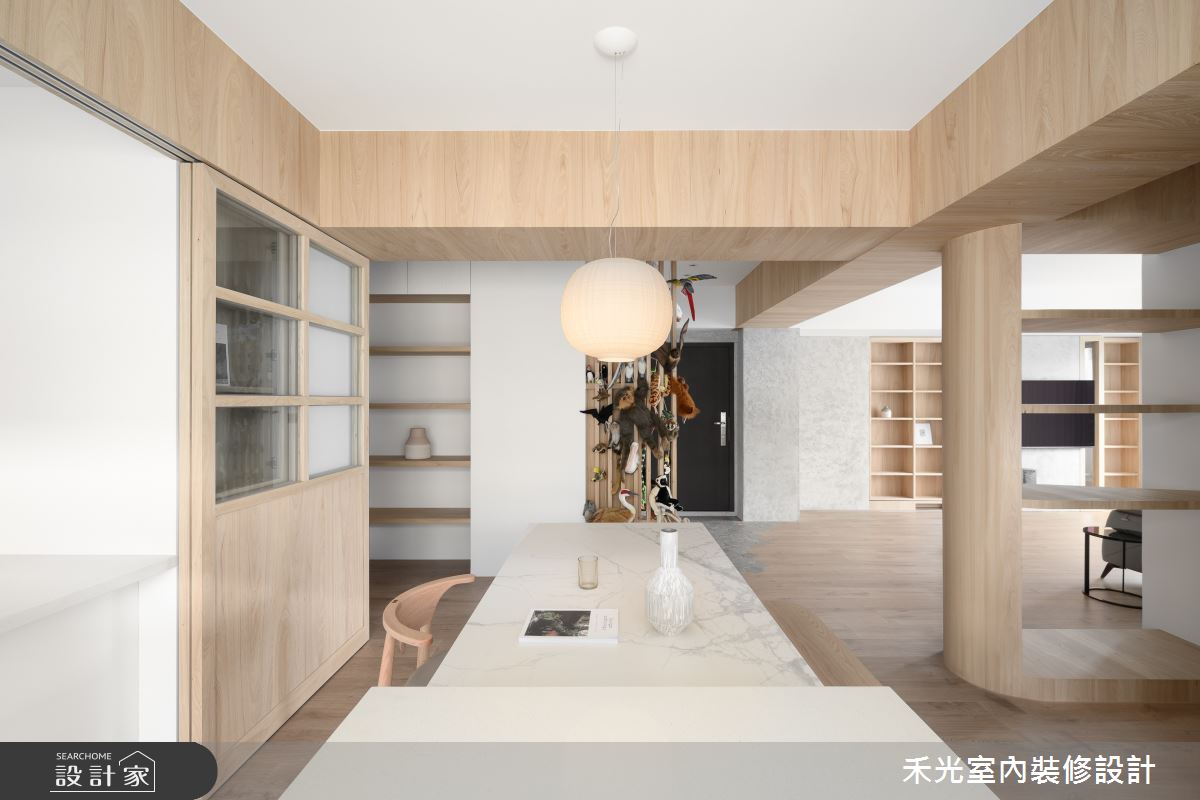 來自禾光室內裝修設計的41坪日式禪風住宅案,屋主一家人共有2位大人,是一間單層老屋(16~30年)的四房格局,設計師藉由建材以雪花家榆鋼刷木皮、栓木鋼刷木皮、系統板材、舒然銘板、矽鋼石、人造石、強化清玻璃、水波紋玻璃、鋁框門、超耐磨地板、榻榻米、竹炭漆、特殊塗料的搭配應用,實現一家人的理想生活。