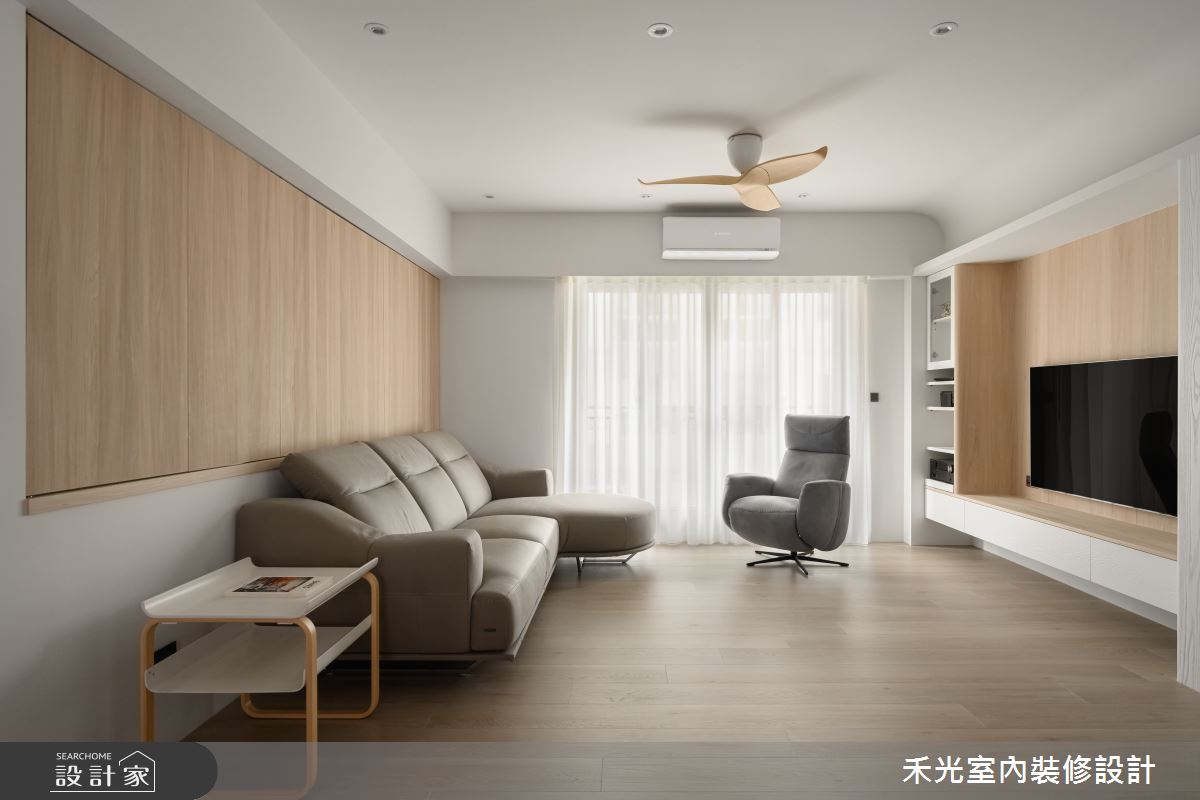 由禾光室內裝修設計精心規劃的35坪三房住宅空間,家庭成員一共有2位大人、1位小孩。因應屋主需求,設計師運用簡約風作為主軸,搭配超耐磨木地板、鋼刷木皮、系統板材、人造石、栓木鋼刷木皮、美耐板、明鏡、花紋玻璃、特殊塗料、白橡木、強化清玻璃,打造全家人的夢想家居。