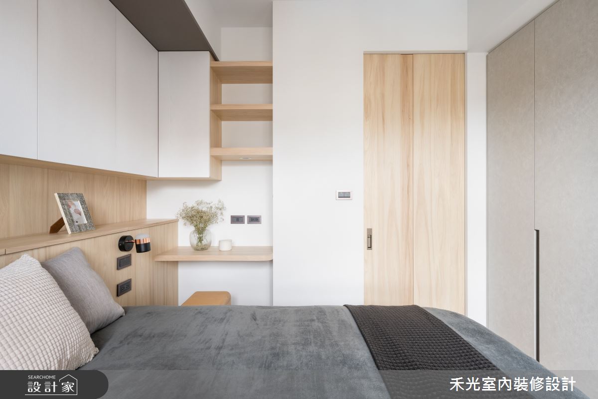 由禾光室內裝修設計精心規劃的18坪兩房住宅空間,家庭成員一共有2位大人。因應屋主需求,設計師運用日式無印風作為主軸,搭配超耐磨木地板、鐵件、系統板材、實木皮、特殊塗料、風琴簾,打造全家人的夢想家居。
