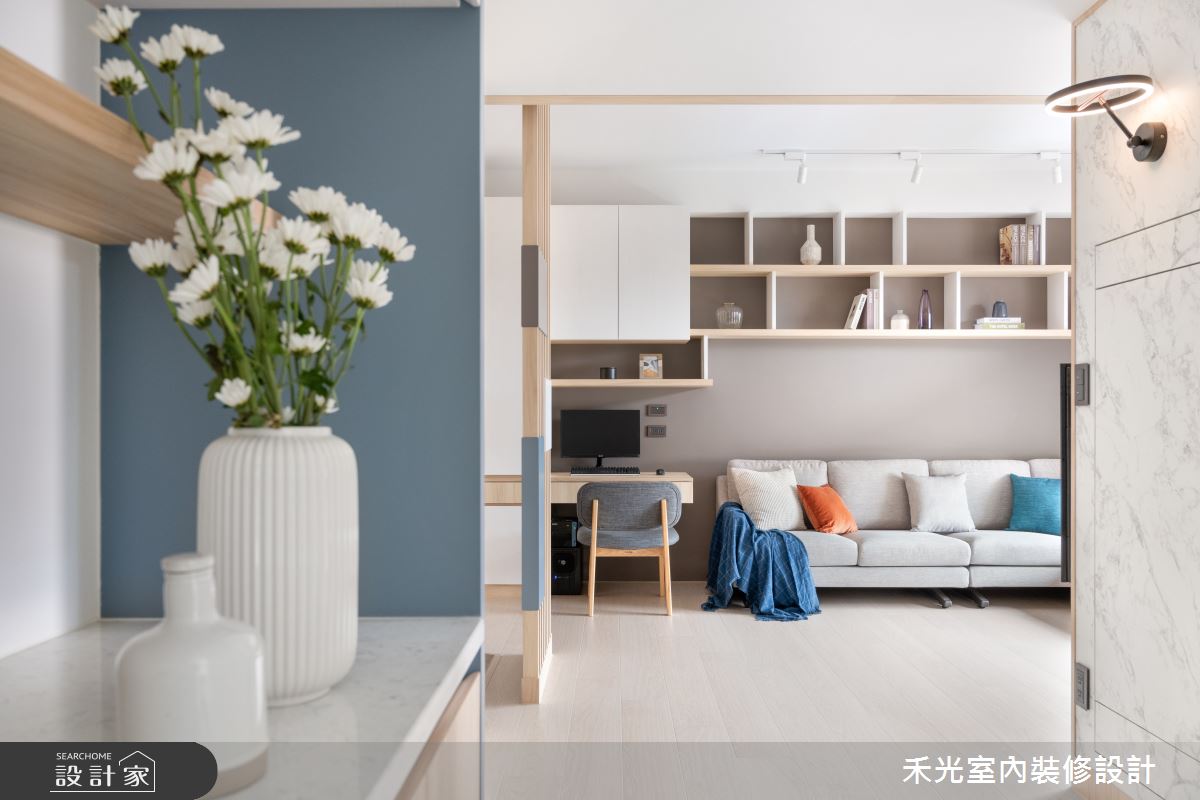 來自禾光室內裝修設計的23坪簡約風住宅案,屋主一家人共有2位大人,是一間單層老屋(16~30年)的兩房格局,設計師藉由建材以超耐磨木地板、石英磚/拋光石英磚、鋼刷木皮、系統板材、人造石、烤漆鐵件、鋁框門、長虹玻璃、栓木的搭配應用,實現一家人的理想生活。