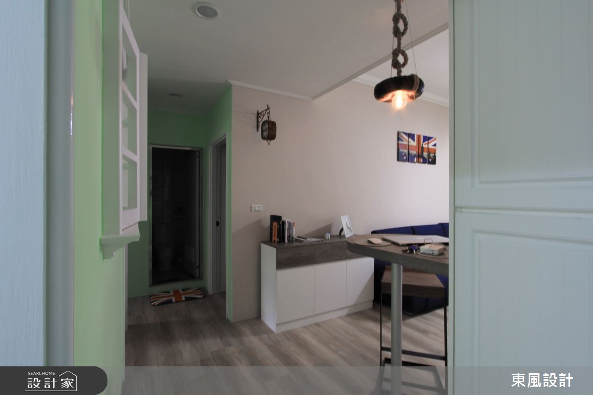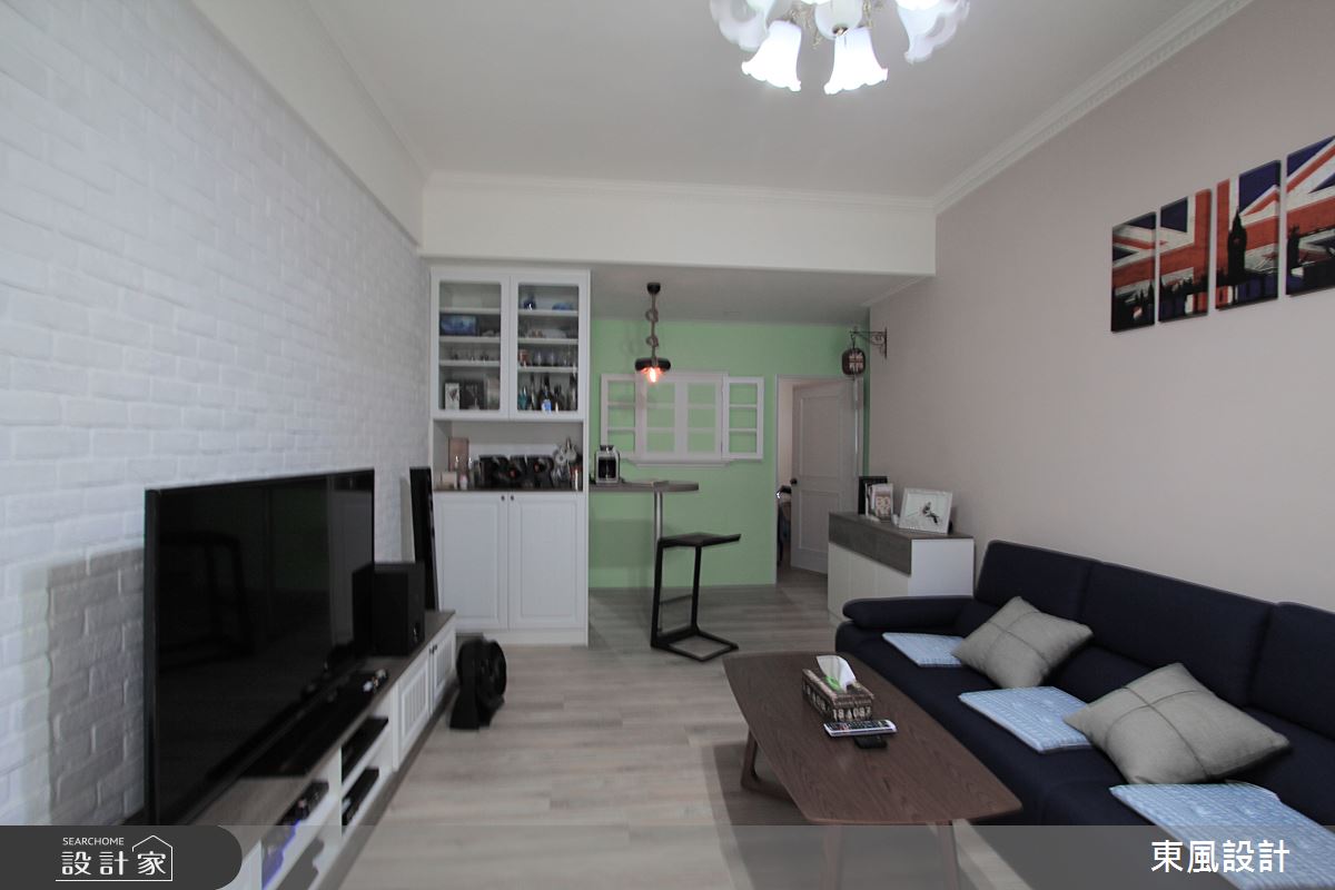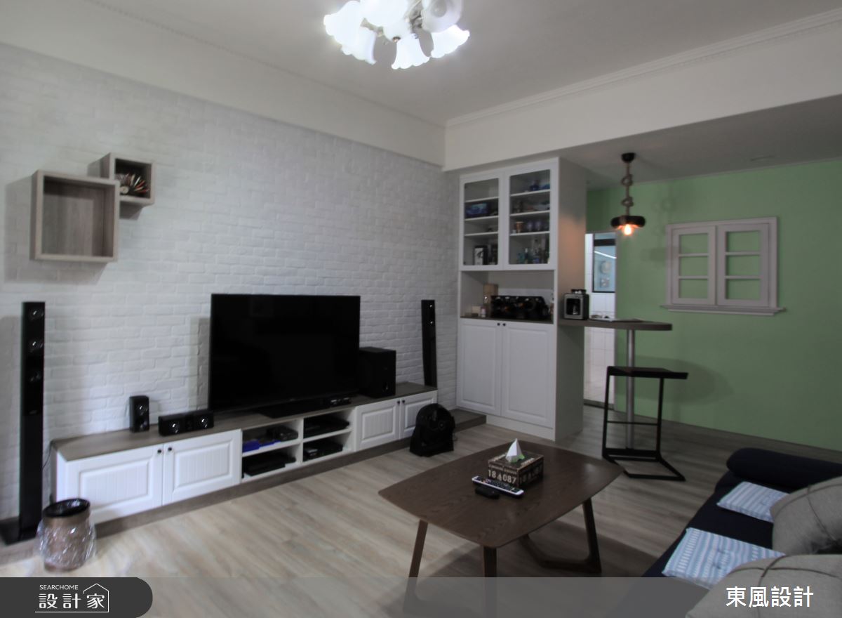 來自東風室內設計的26坪休閒風住宅案,屋主一家人共有2位大人,是一間單層老屋(16~30年)的兩房格局,設計師藉由建材以文化石、配色、噴漆、壁紙、系統櫃、歐式門片、地板的搭配應用,實現一家人的理想生活。