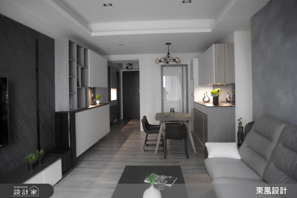 由東風室內設計精心規劃的25坪三房住宅空間,家庭成員一共有2位大人、2位小孩。因應屋主需求,設計師運用休閒風作為主軸,搭配大理石、德國系統櫃、鏡面、烤漆玻璃、特殊漆、文化石,打造全家人的夢想家居。