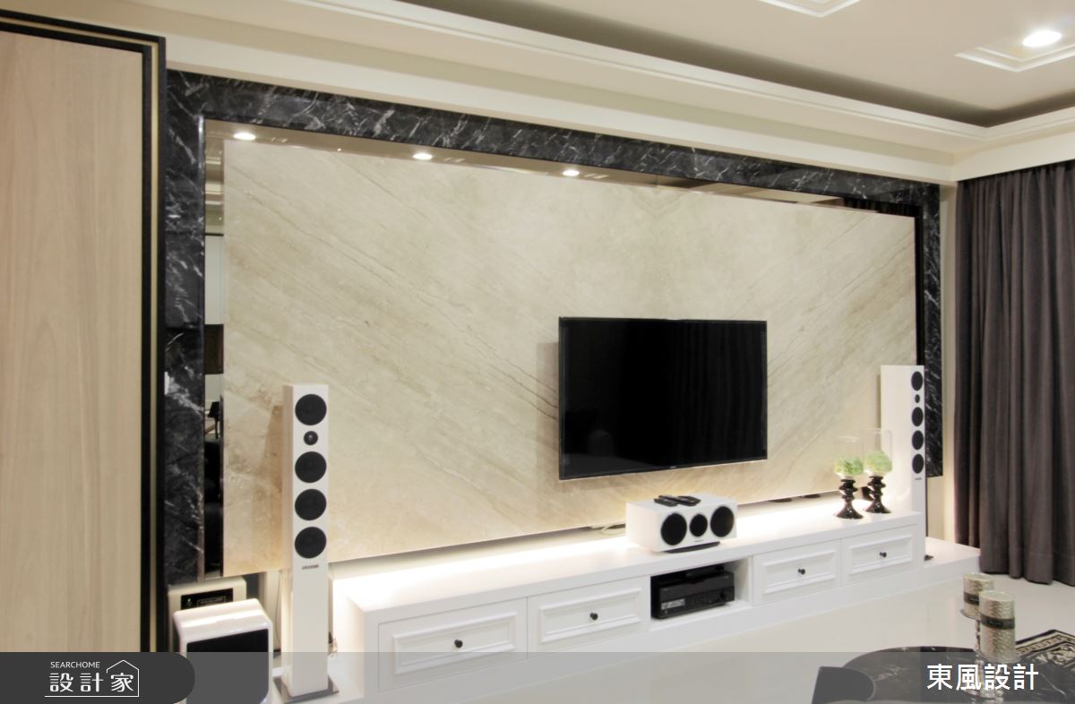 本案為東風室內設計的35坪新古典新成屋(5年以下)設計作品,格局為單層三房的居住空間。居住成員包含3位大人。全室建材的搭配,應用帝諾大理石、黑雲石、鏡面、線板、壁紙、鐵件、清玻、實木皮、噴漆,展現溫馨的居家氛圍。