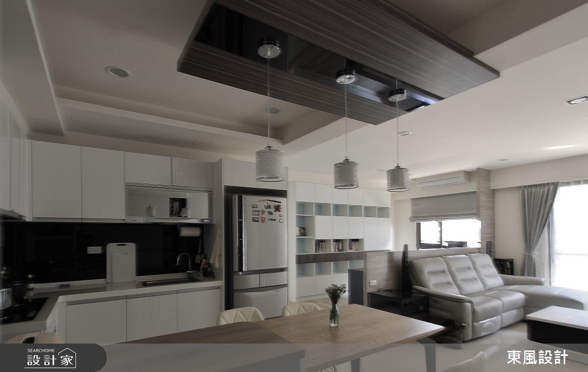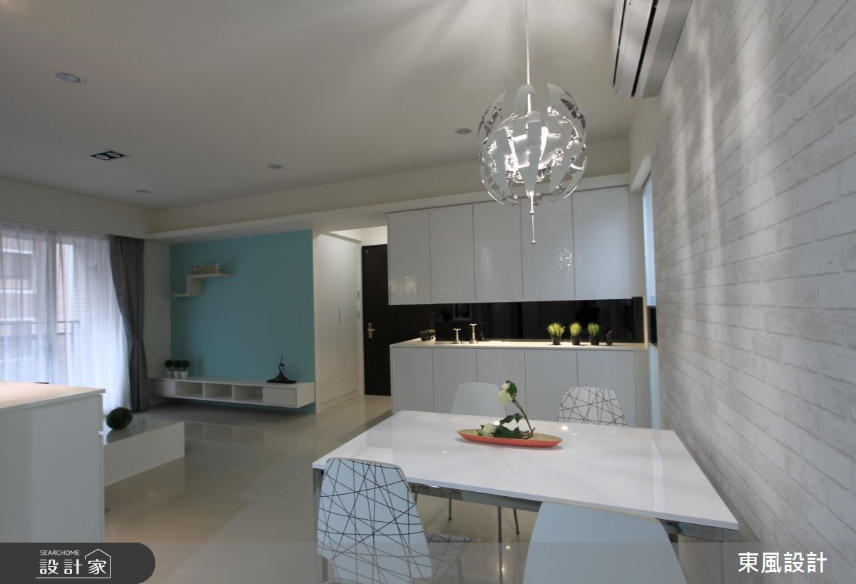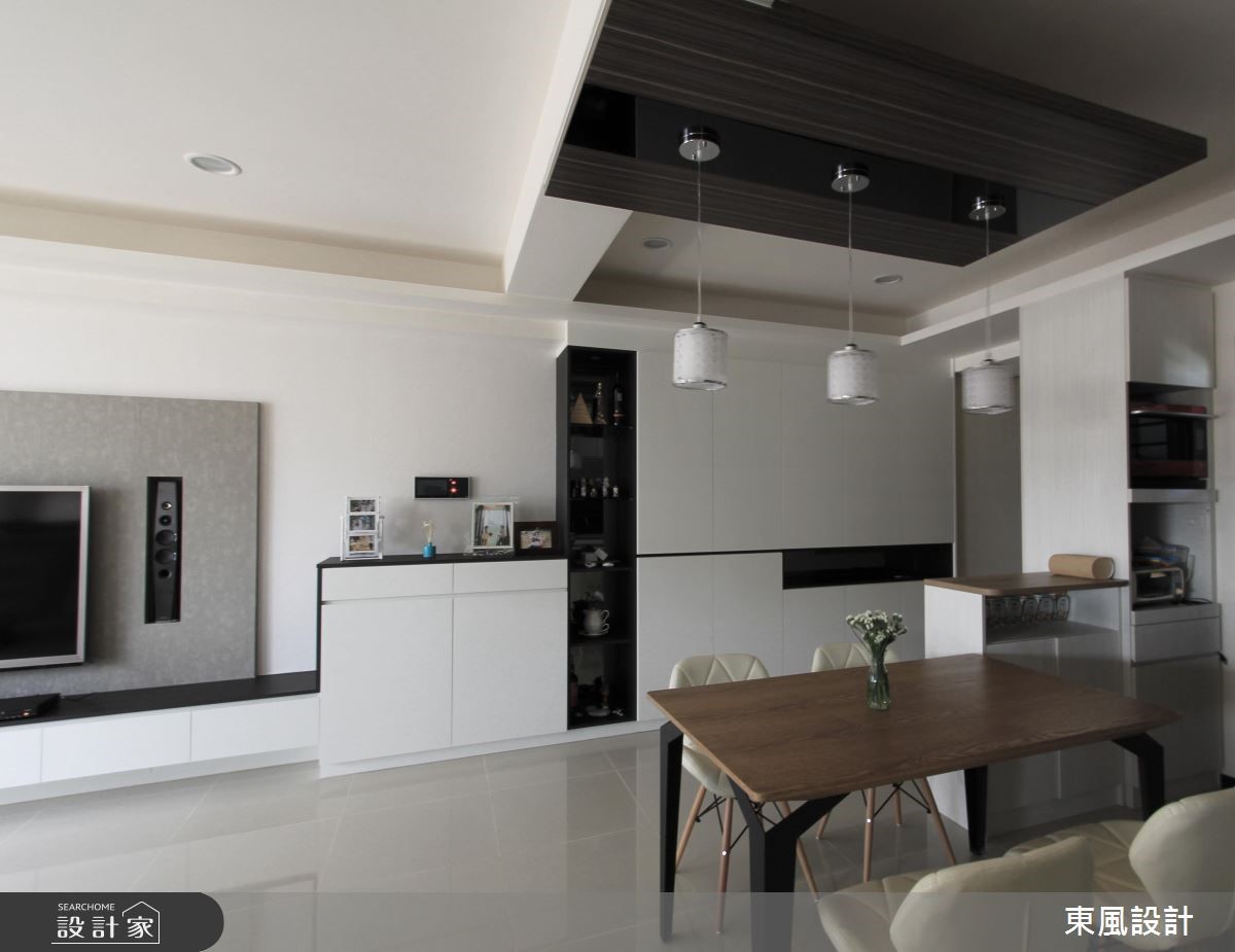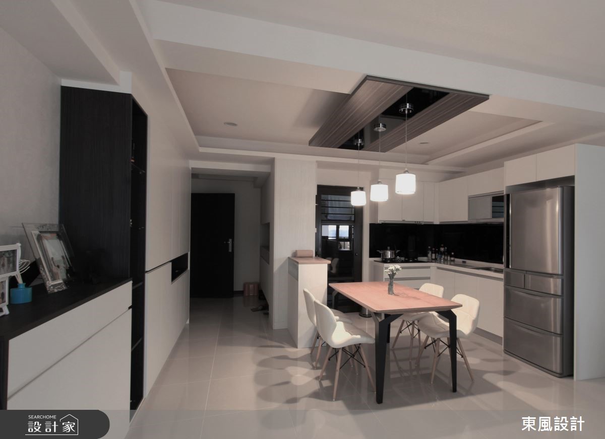 來自東風室內設計的26坪簡約風住宅案,屋主一家人共有2位大人、2位小孩,是一間單層新成屋(5年以下)的三房格局,設計師藉由建材以黑玻、鋁框拉門、系統櫃、燈具、玻璃、地板的搭配應用,實現一家人的理想生活。