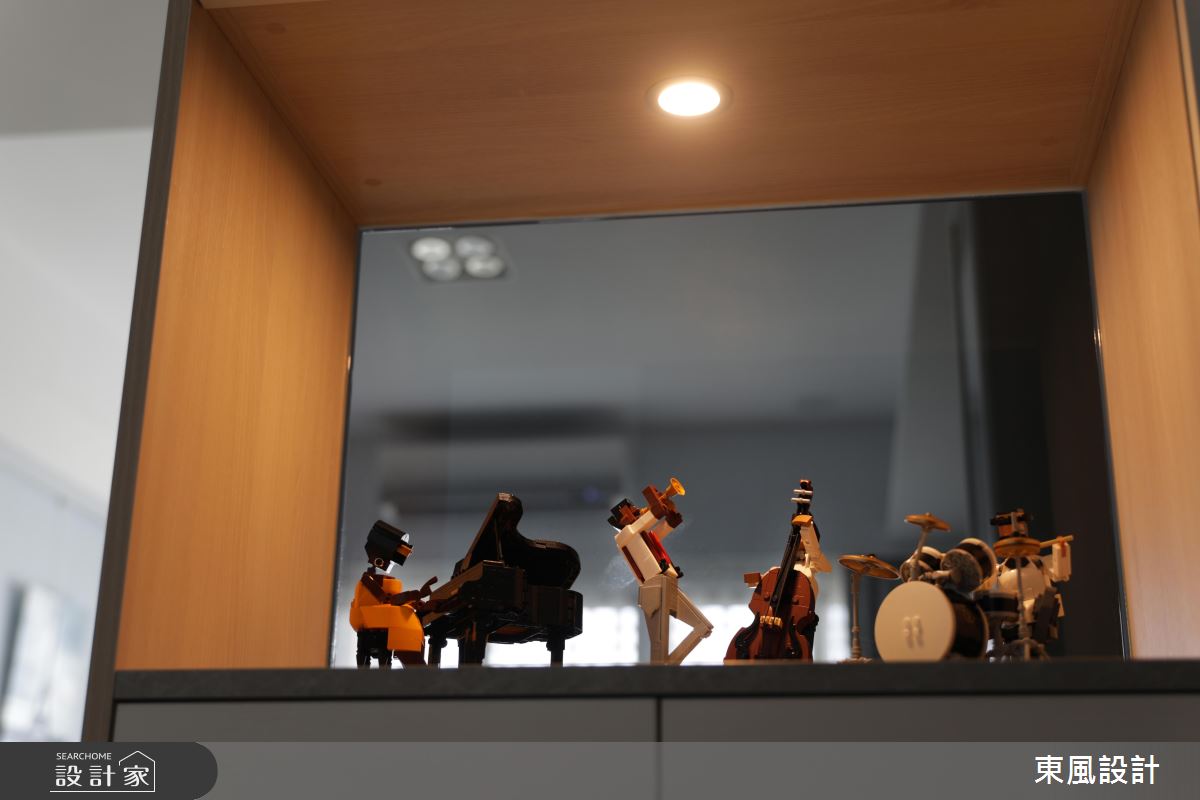 由東風室內設計精心規劃的28坪四房住宅空間,家庭成員一共有2位大人、2位小孩。因應屋主需求,設計師運用現代風作為主軸,搭配木皮、鏡面、石材、噴漆、德國系統櫃、玻璃、燈飾,打造全家人的夢想家居。