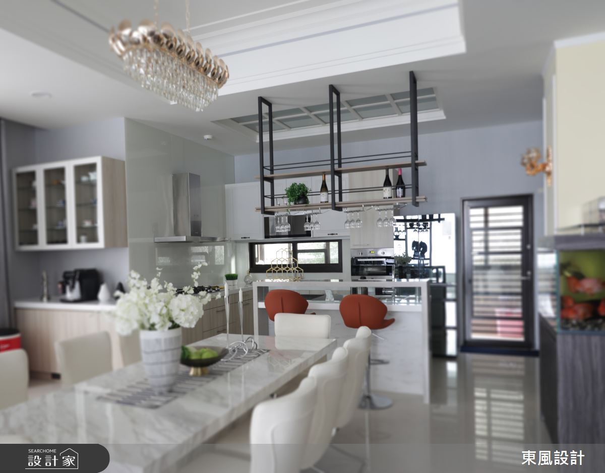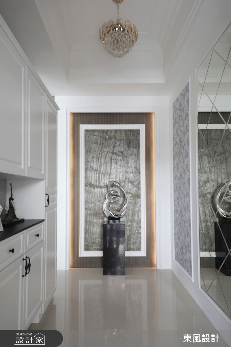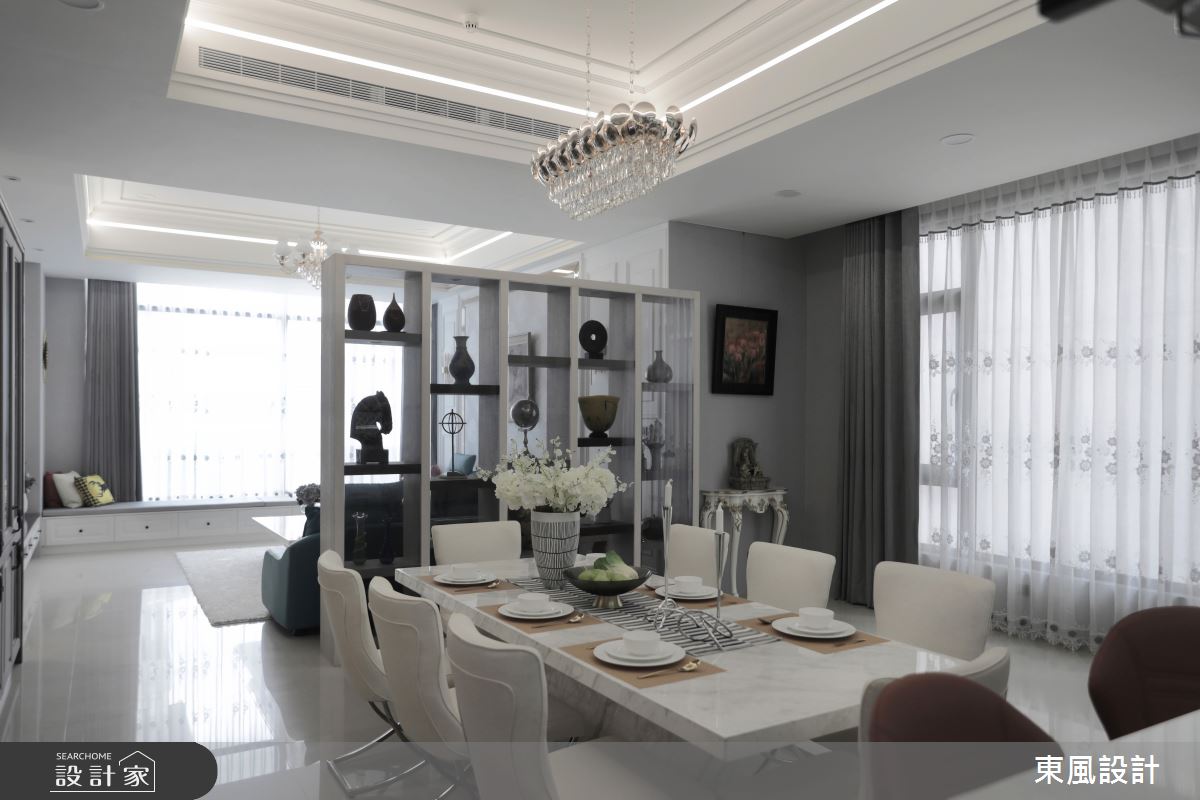 由東風室內設計精心規劃的130坪六房住宅空間,家庭成員一共有7位大人、3位小孩、2位長輩。因應屋主需求,設計師運用新古典作為主軸,搭配石材、實木、噴漆、線板、進口燈具、鐵件、壁紙、歐式家具、皮革、德國系統櫃、地板,打造全家人的夢想家居。