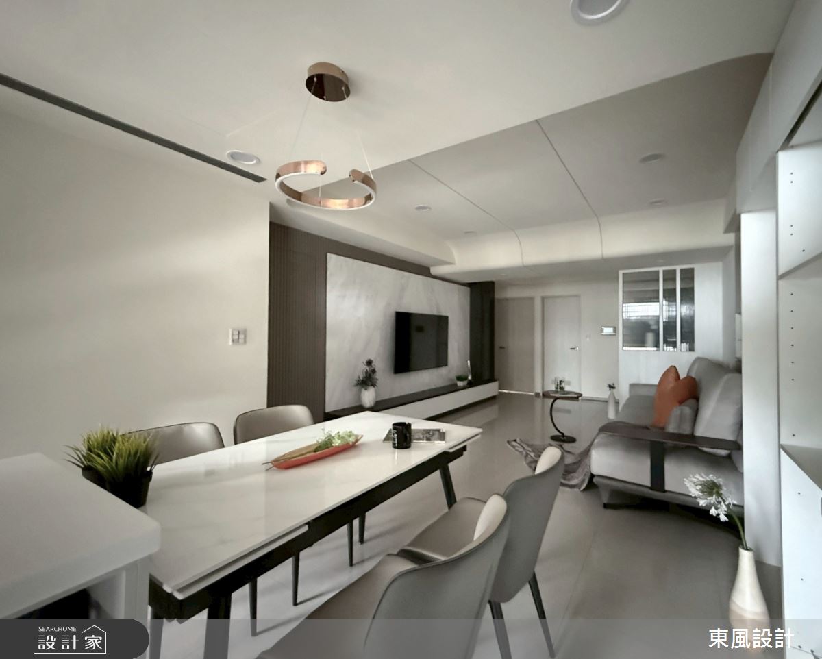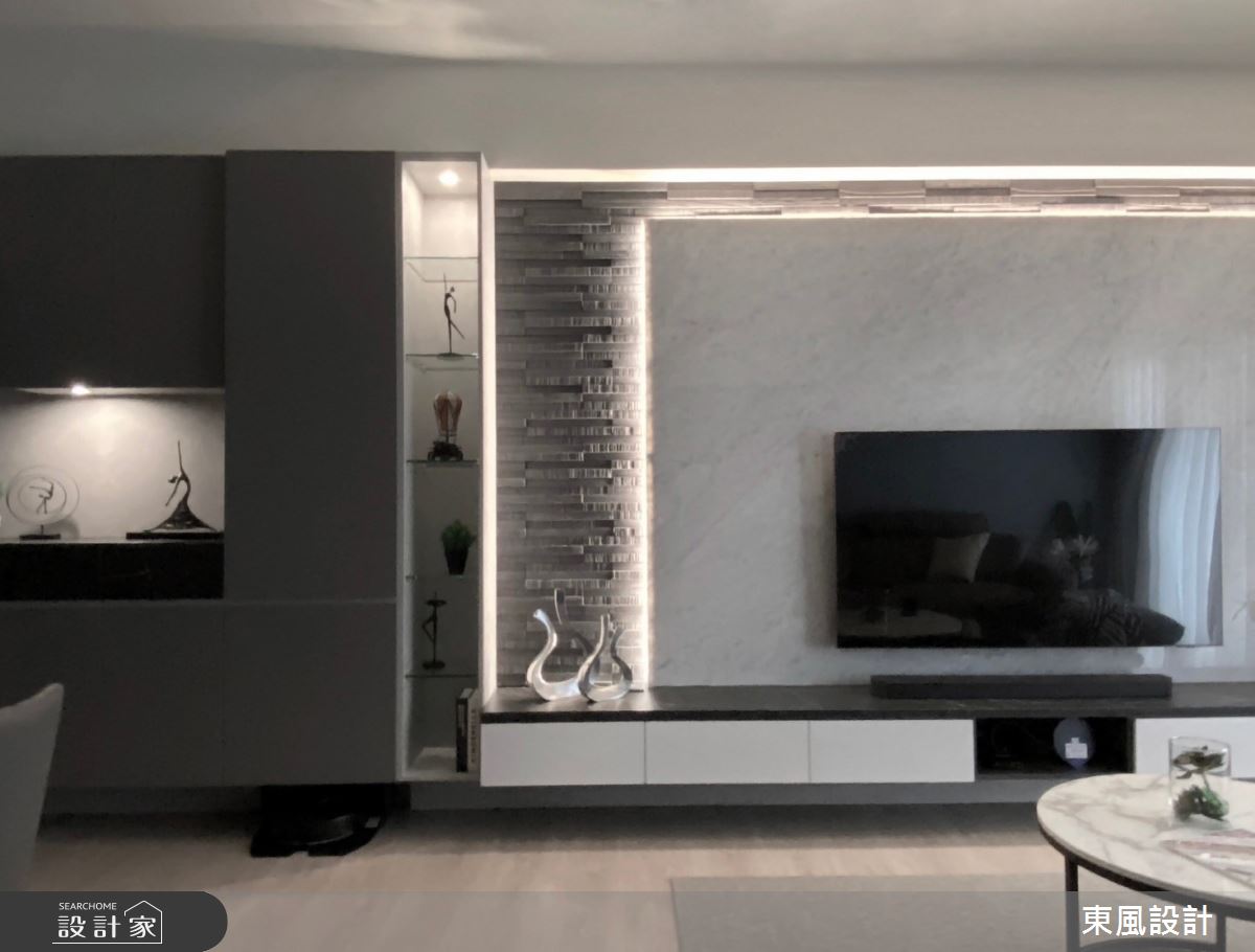 本案為東風室內設計的30坪現代風新成屋(5年以下)設計作品,格局為單層四房的居住空間。居住成員包含1位大人、2位長輩。全室建材的搭配,應用大理石、地板、配色、木皮、文化石,展現溫馨的居家氛圍。