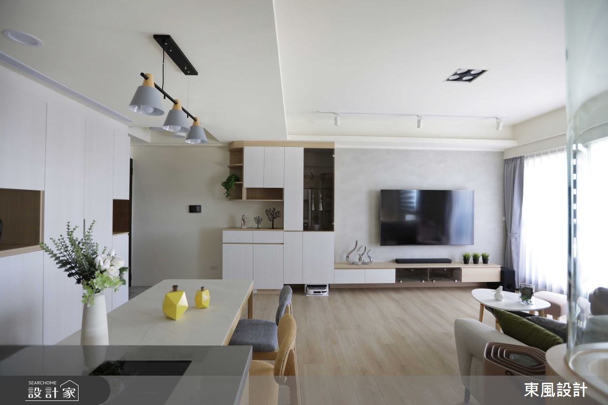 本案為東風室內設計的30坪北歐風新成屋(5年以下)設計作品,格局為單層三房的居住空間。居住成員包含2位大人、3位小孩。全室建材的搭配,應用德國系統櫃、烤漆、配色、玻璃、燈具、清水模塗料,展現溫馨的居家氛圍。