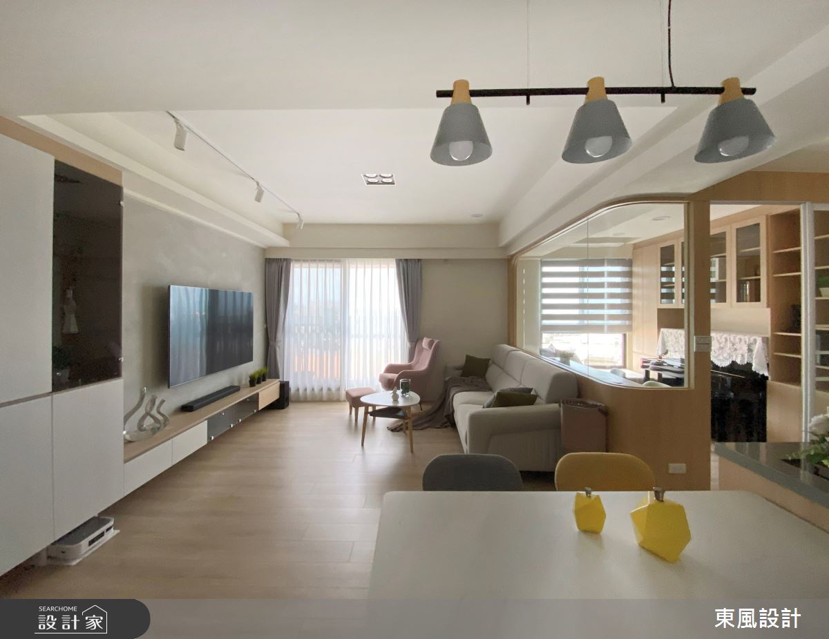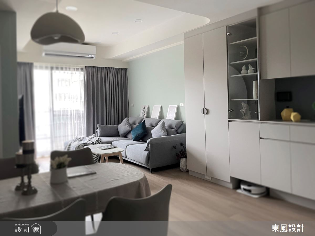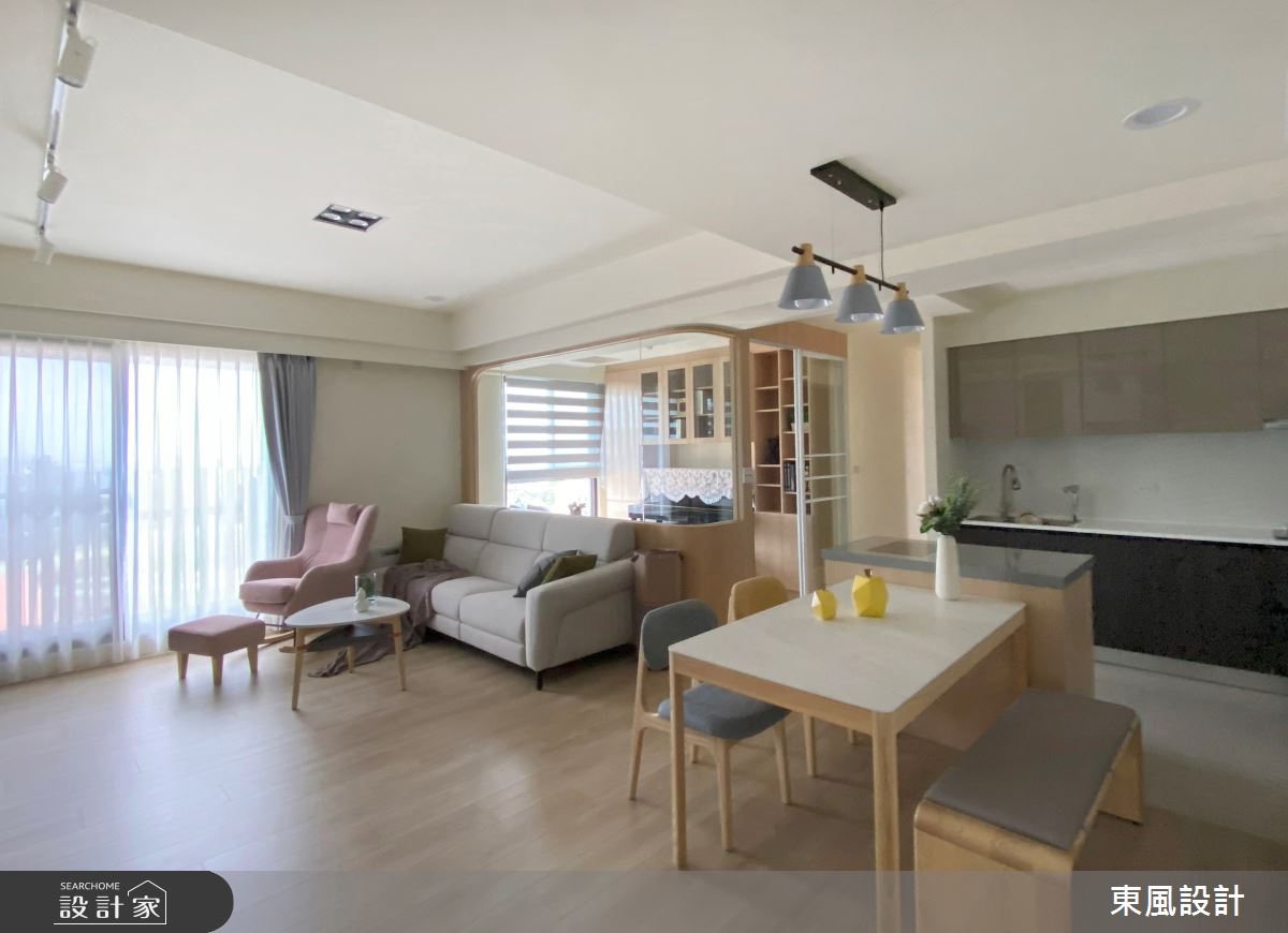 本案為東風室內設計的24坪北歐風新成屋(5年以下)設計作品,格局為單層三房的居住空間。居住成員包含2位大人。全室建材的搭配,應用配色、木皮、噴漆、玻璃、德國系統櫃,展現溫馨的居家氛圍。