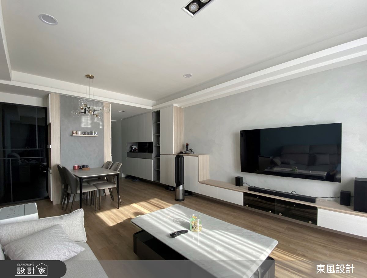 來自東風室內設計的22坪現代風住宅案,屋主一家人共有1位大人,是一間單層新成屋(5年以下)的三房格局,設計師藉由建材的搭配應用,實現一家人的理想生活。