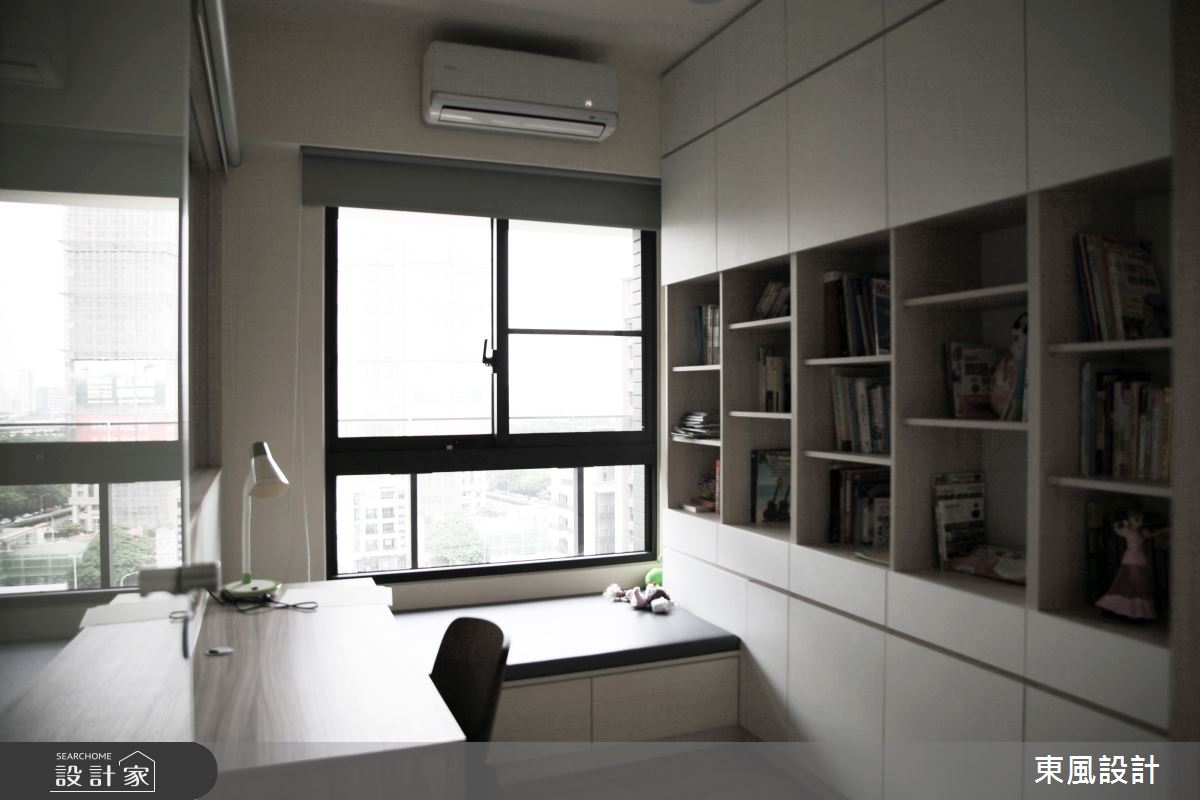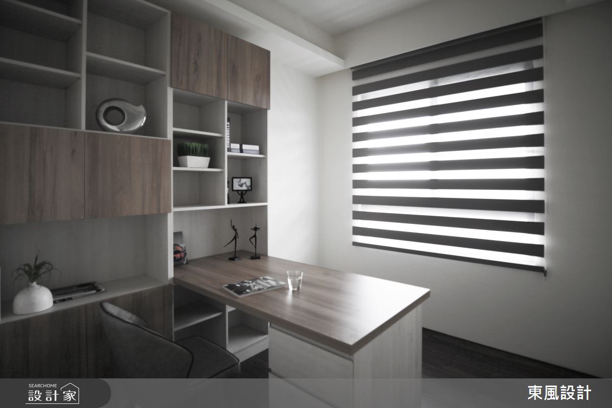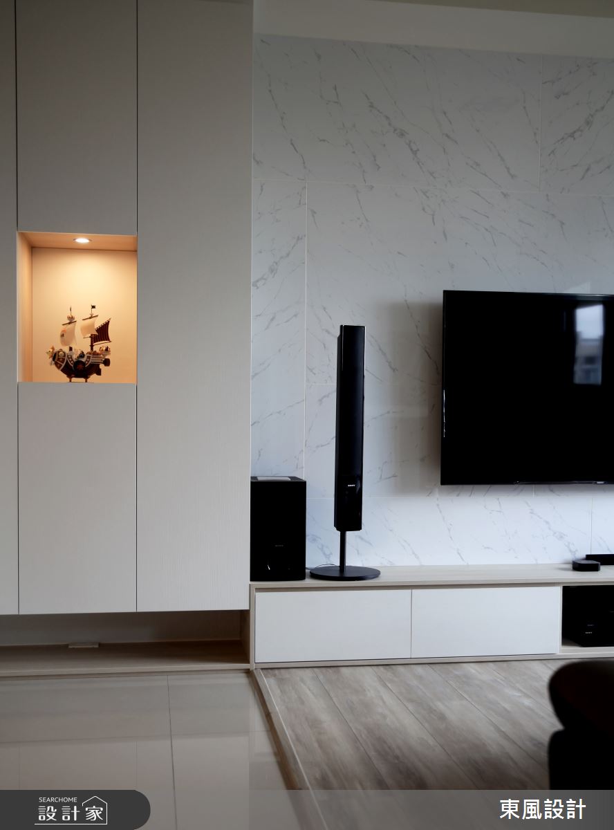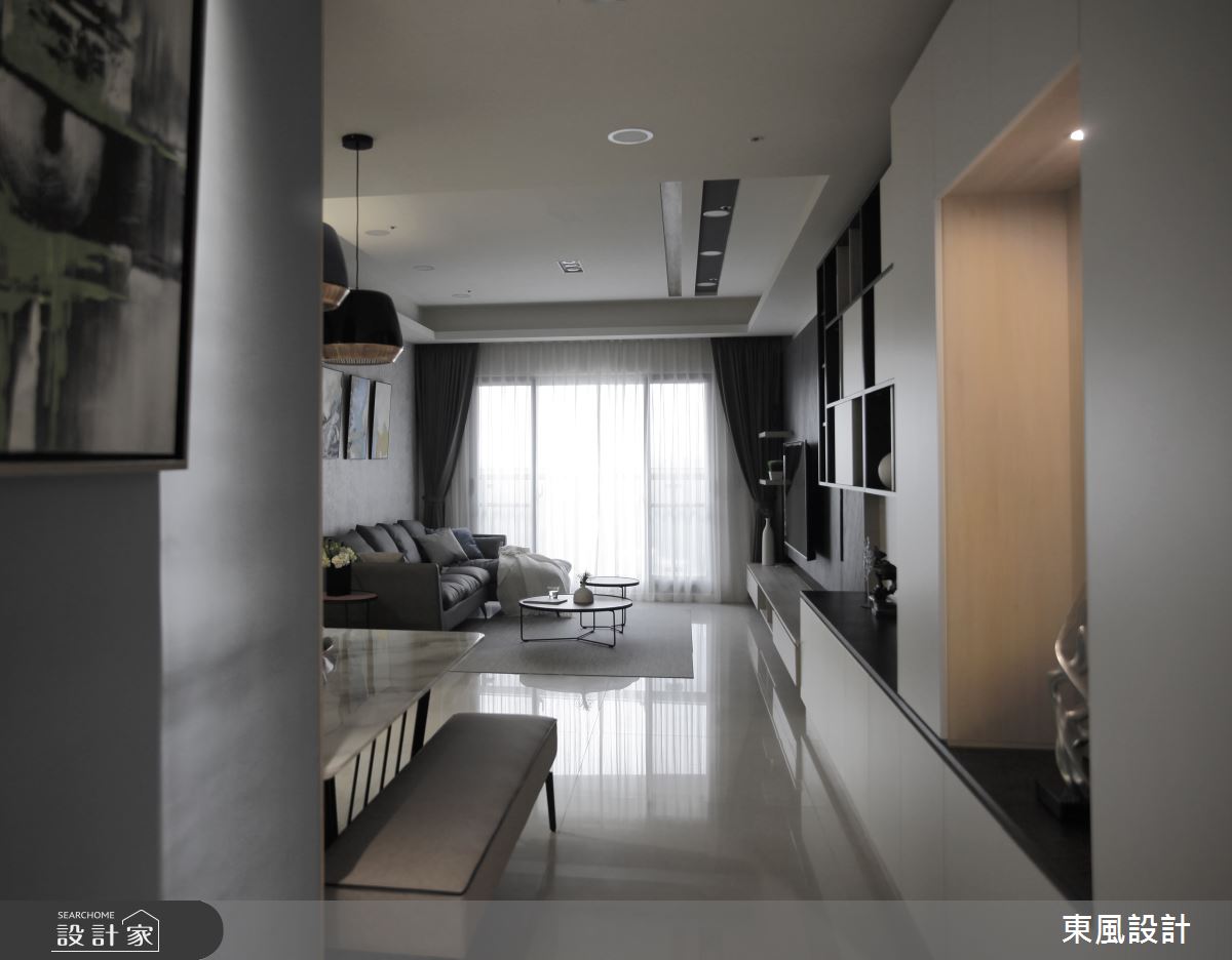 本案為東風室內設計的35坪現代風新成屋(5年以下)設計作品,格局為單層四房的居住空間。居住成員包含2位大人、2位小孩。全室建材的搭配,應用薄石板、實木皮、高級壁紙、德國系統櫃、黑鏡,展現溫馨的居家氛圍。