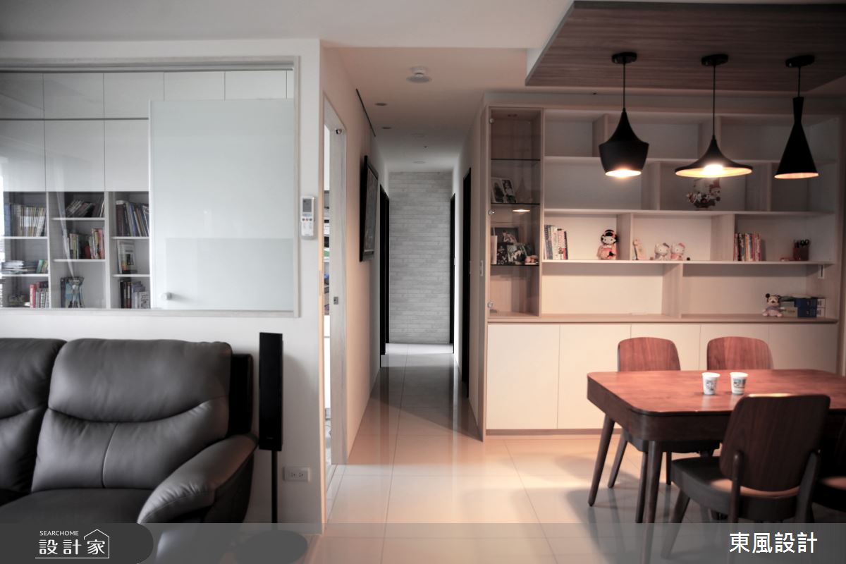 來自東風室內設計的30坪現代風住宅案,屋主一家人共有2位大人,是一間單層新成屋(5年以下)的三房格局,設計師藉由建材以燈飾、清水模板、木皮、系統櫃的搭配應用,實現一家人的理想生活。