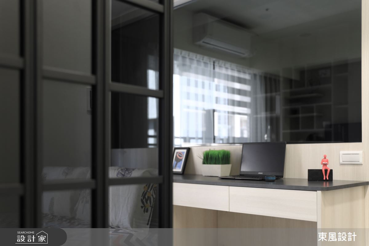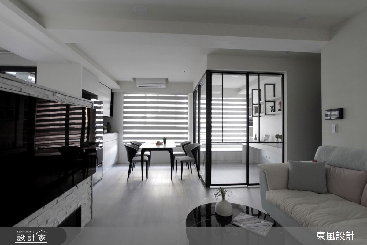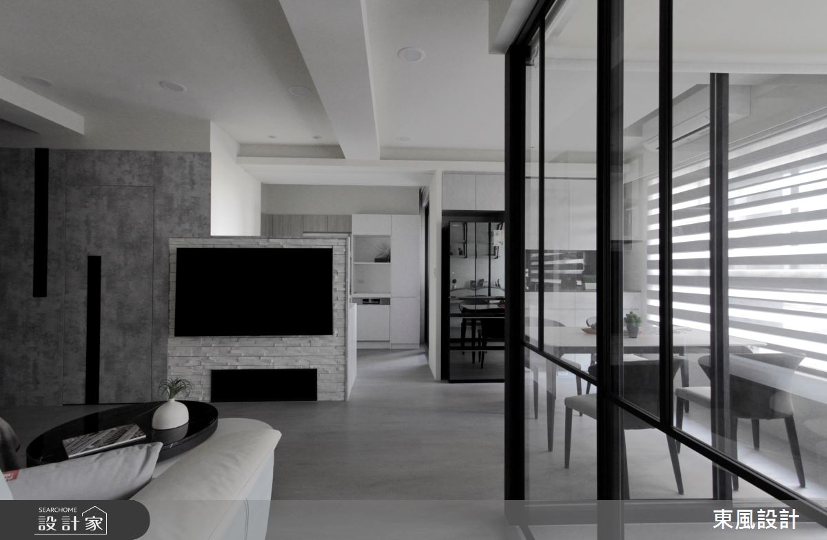 來自東風室內設計的26坪簡約風住宅案,屋主一家人共有2位大人、2位小孩,是一間單層新成屋(5年以下)的三房格局,設計師藉由建材以黑玻、鋁框拉門、系統櫃、燈具、玻璃、地板的搭配應用,實現一家人的理想生活。