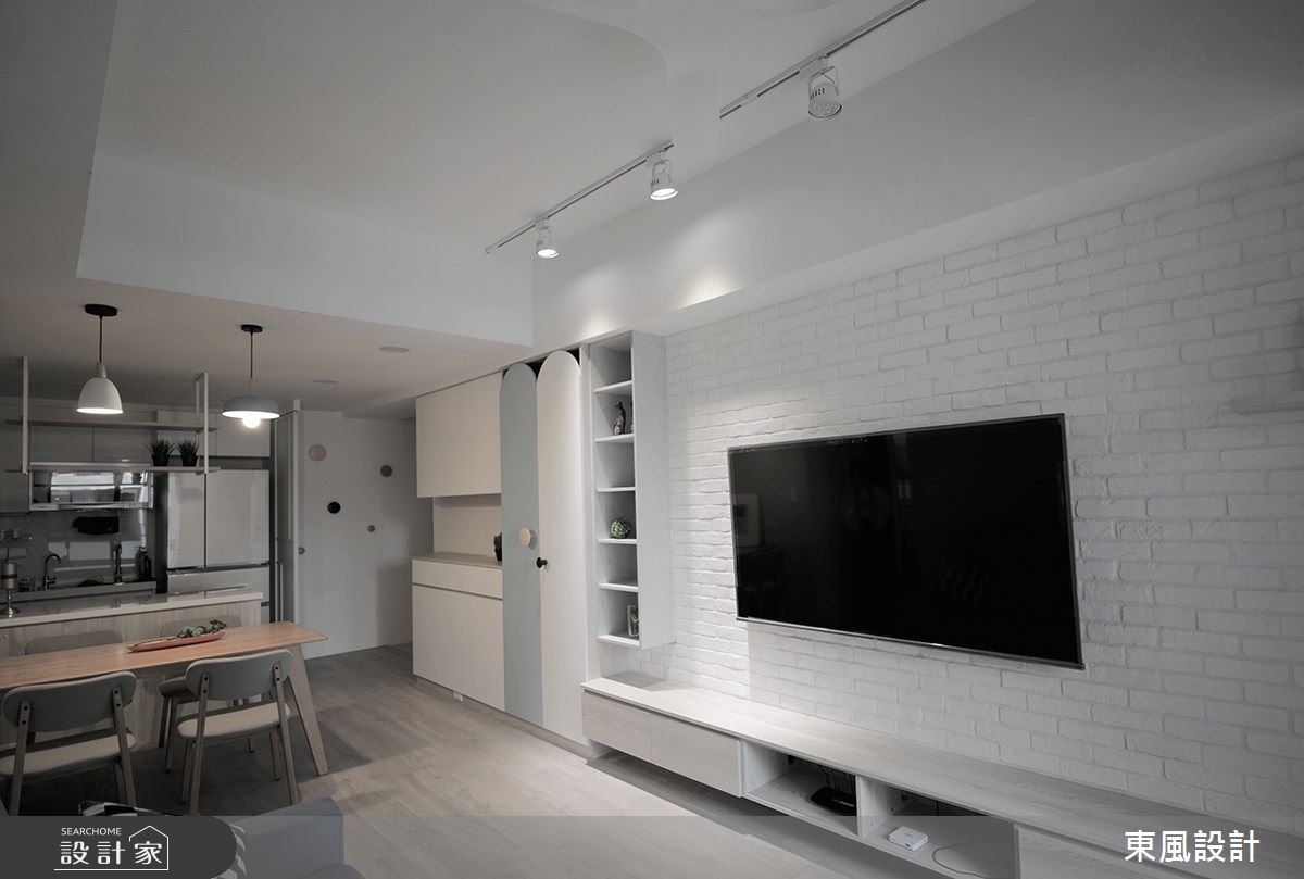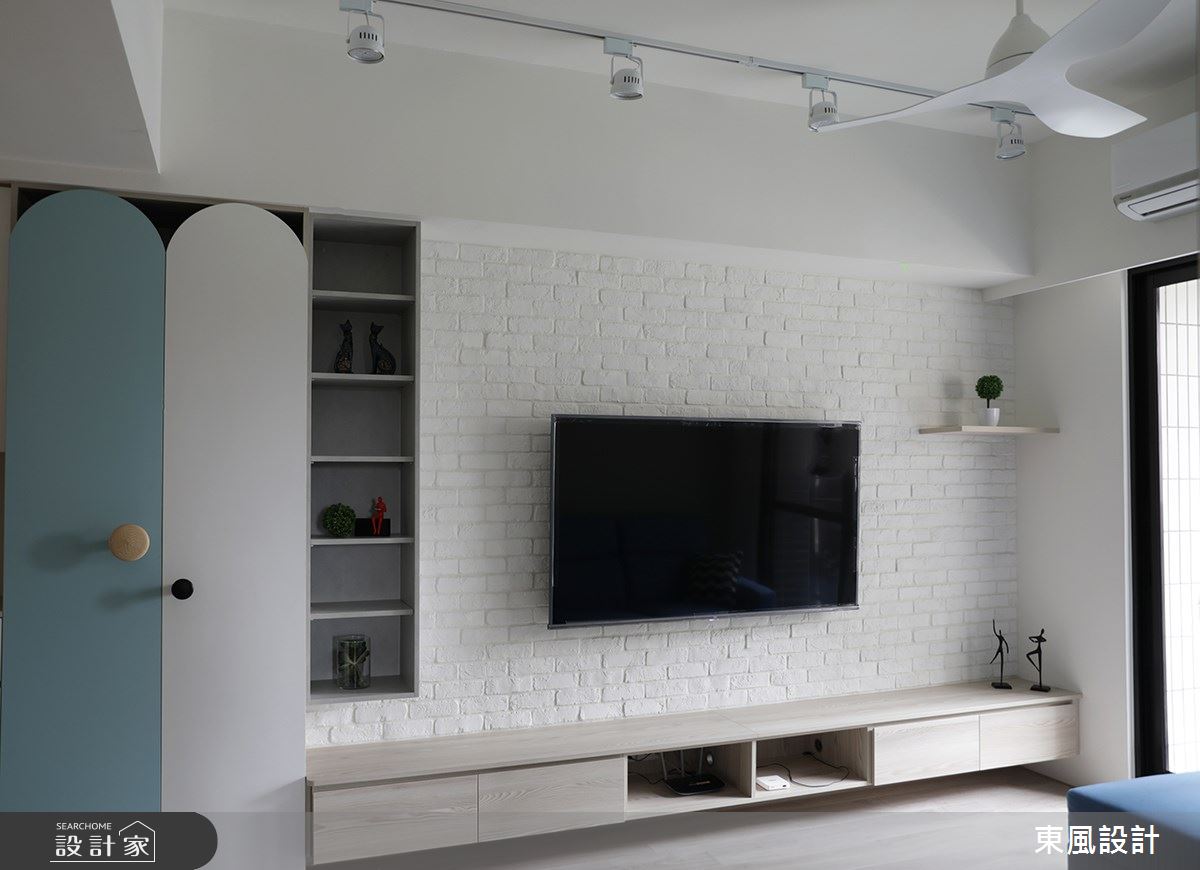 來自東風室內設計的22坪北歐風住宅案,屋主一家人共有2位大人、1位小孩,是一間單層新成屋(5年以下)的三房格局,設計師藉由建材以德國系統櫃、文化石、配色、軌道燈、鐵件的搭配應用,實現一家人的理想生活。