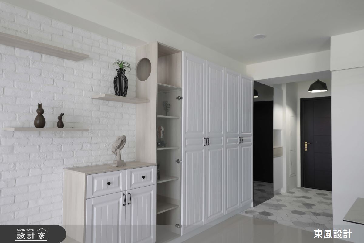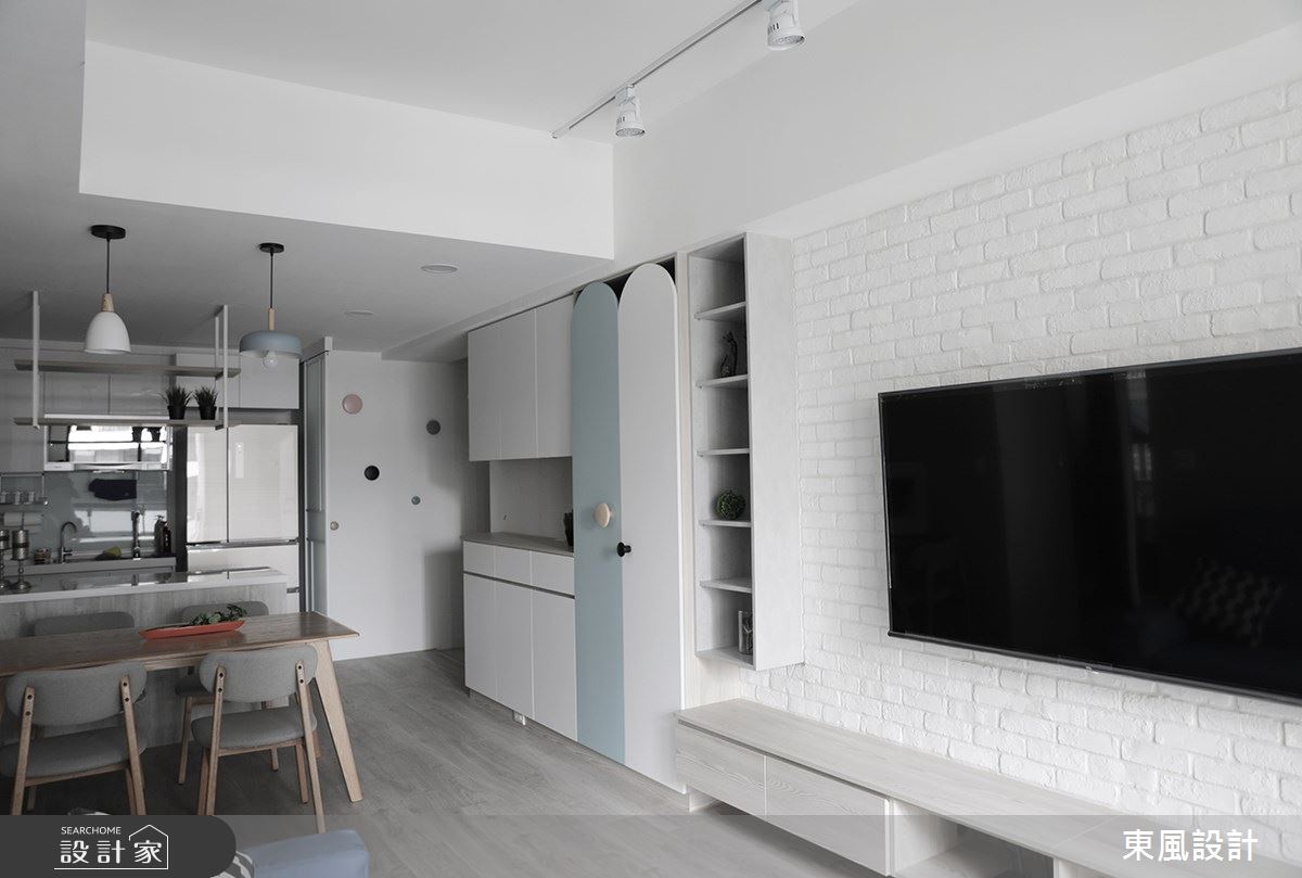 由東風室內設計精心規劃的35坪三房住宅空間,家庭成員一共有2位大人。因應屋主需求,設計師運用北歐風作為主軸,搭配文化石、拉門、燈飾、配色、系統櫃、歐式門片、歐式地板,打造全家人的夢想家居。
