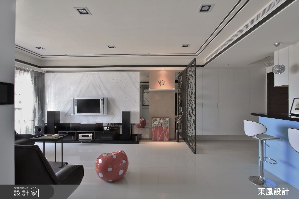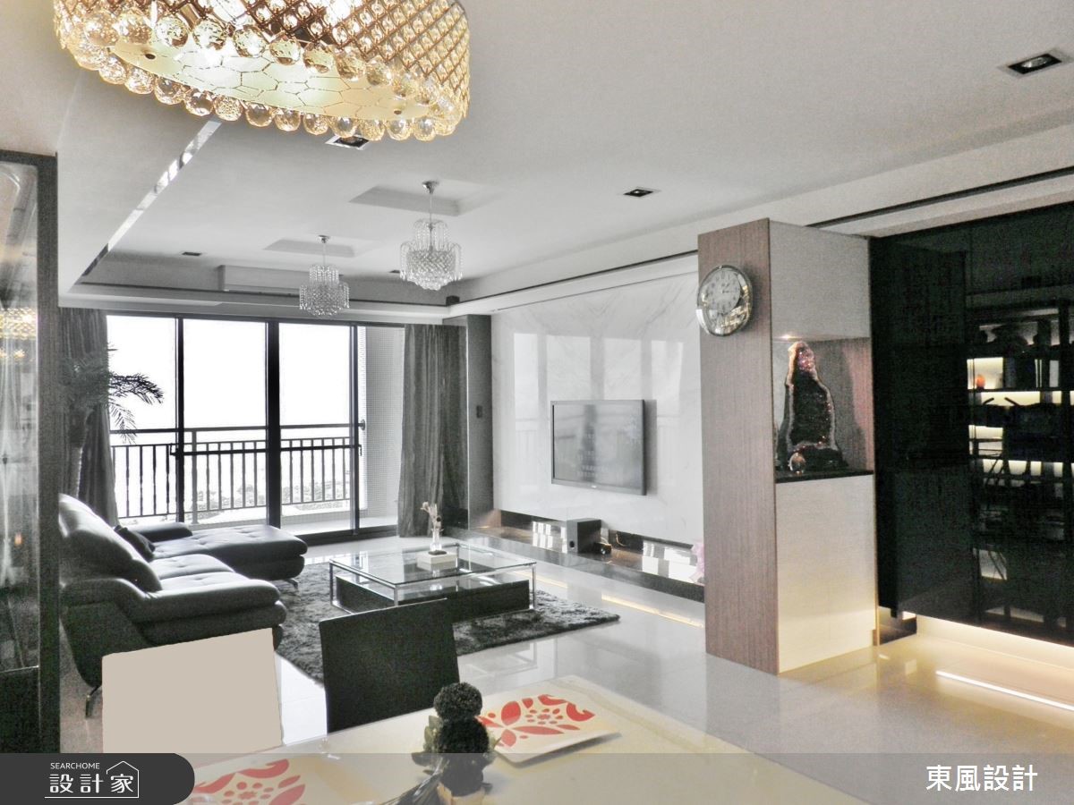 來自東風室內設計的45坪奢華風住宅案,屋主一家人共有2位大人、2位小孩,是一間單層新成屋(5年以下)的四房格局,設計師藉由建材以石材、鐵件、鏡面、烤漆玻璃、歐飾門板、德國系統櫃、實木皮的搭配應用,實現一家人的理想生活。