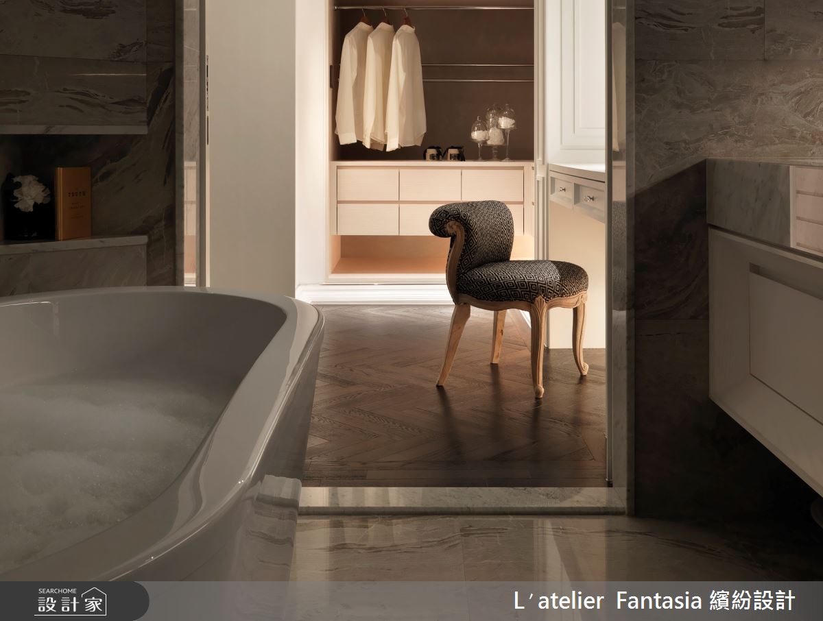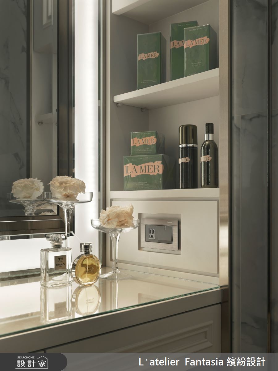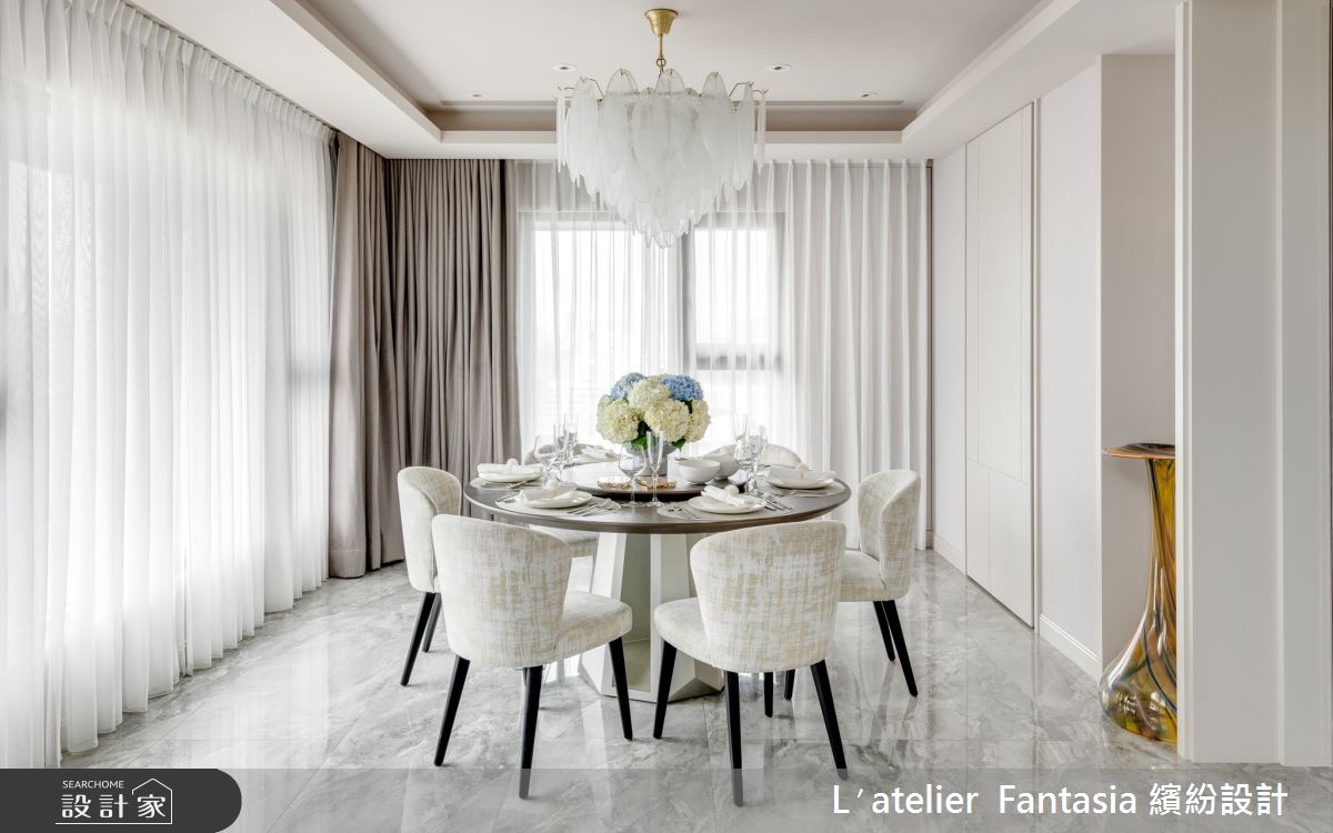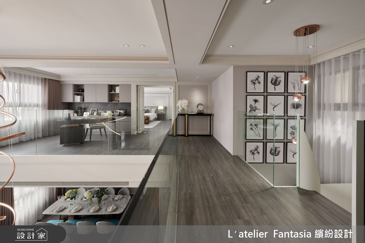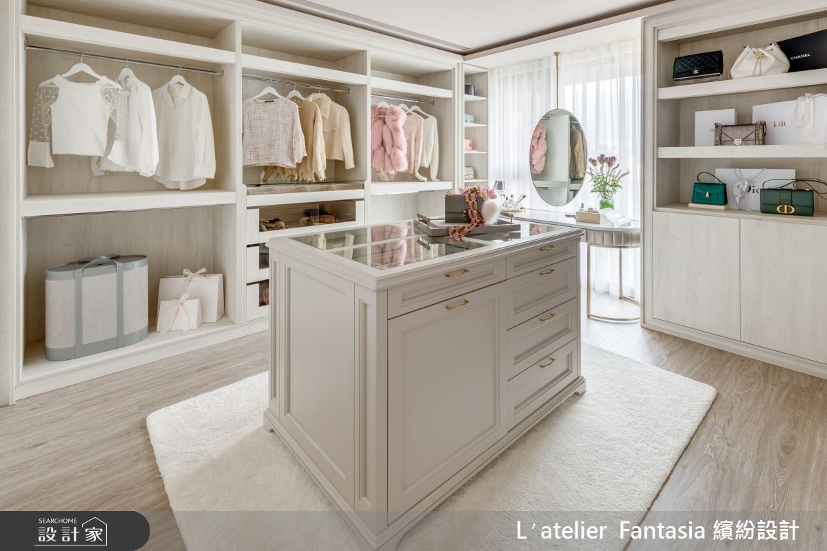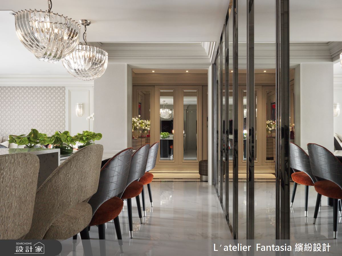 掌握屋主喜愛愛馬仕的創新精神與非凡品味,繽紛設計團隊透過高端訂製的時尚概念出發,透過愛馬仕壁紙、布藝、燈飾與展示層櫃的典藏設計,將亙存於世的經典融入居家空間。 入室後的玄關,天花板與壁面以線板描繪出深邃視感,讓坪數有限的落塵區更顯開闊,壁面以愛馬仕絲巾結合五金繃飾的創作,伴隨古典矮櫃、藝術畫作與花藝交織出風格端景,詮釋美學極致的追求。落地窗引入自然光源,照亮公領域裡優雅細節,沙發背牆以淺色愛馬仕壁紙鋪陳,搭佐兩側流線形的水晶壁燈;沙發以圓弧形擺設,以亮緞面材質的抱枕點綴其中,帶來奢華新意;餐廳區的收納櫃以鏡面元素襯底,投射出線條視覺感的餐椅布、天花懸掛諾大的水晶吊燈以及寬敞的客廳意象,此外開放展示櫃裡陳列著屋主蒐藏的經典包款,呼應整體住宅以精品展示概念為靈感,讓時尚的經典語彙書寫一室精彩;露臺處特別打造的臥榻機能,是一家人閱讀、休閒與共享歡樂的天堂。 小編的最愛 主臥床頭以愛馬仕壁紙襯底,生動的印花圖騰流露奢華質感,衛浴空間則以雲彩線條的大理石鋪敘,一展非凡的精緻品味;小孩房以粉色為基底,天花板飄浮著雲朵造型,內嵌可隨時變化色彩的LED燈,營造夢幻童趣般的仙境。