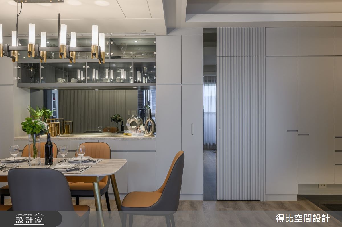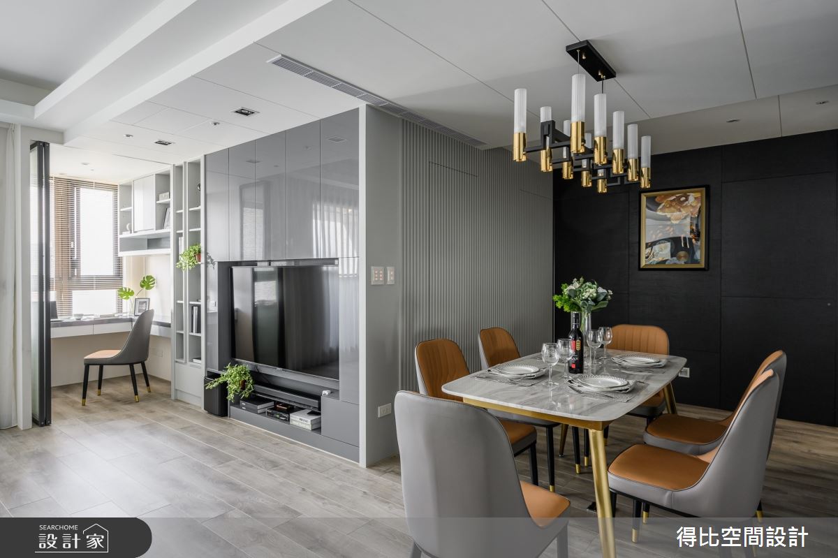 來自得比空間設計的35坪現代風住宅案,屋主一家人共有2位大人、2位小孩,是一間單層新成屋(5年以下)的三房格局,設計師藉由建材以油漆、乳膠漆、壁紙、超耐磨木地板、灰鏡、鍍鈦金屬、木作貼皮、烤漆、系統板材、大理石、皮革、石材、線板的搭配應用,實現一家人的理想生活。