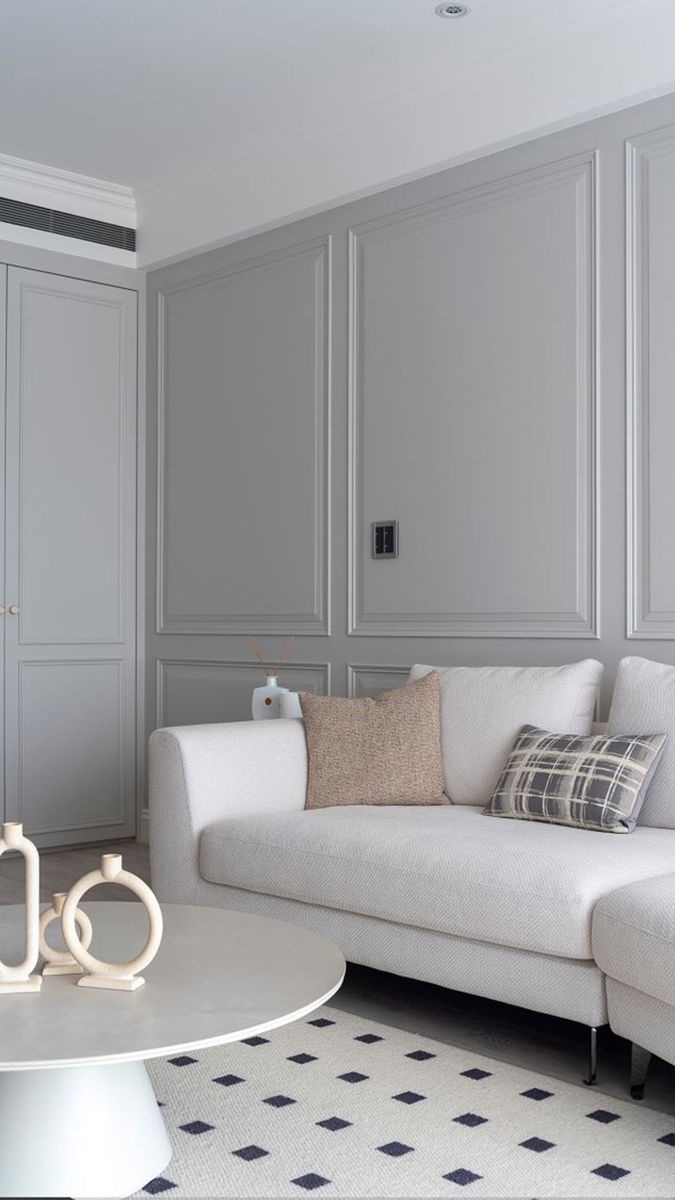室內35坪居宅,設計師依屋主需求調整格局將四房減為兩房,放大公領域,精選材質與配色,創造輕奢質感的混搭風美宅