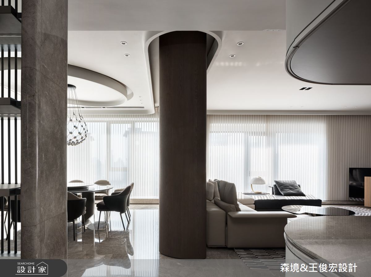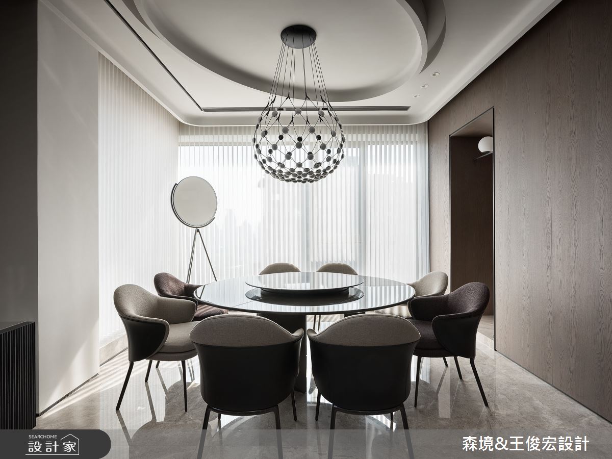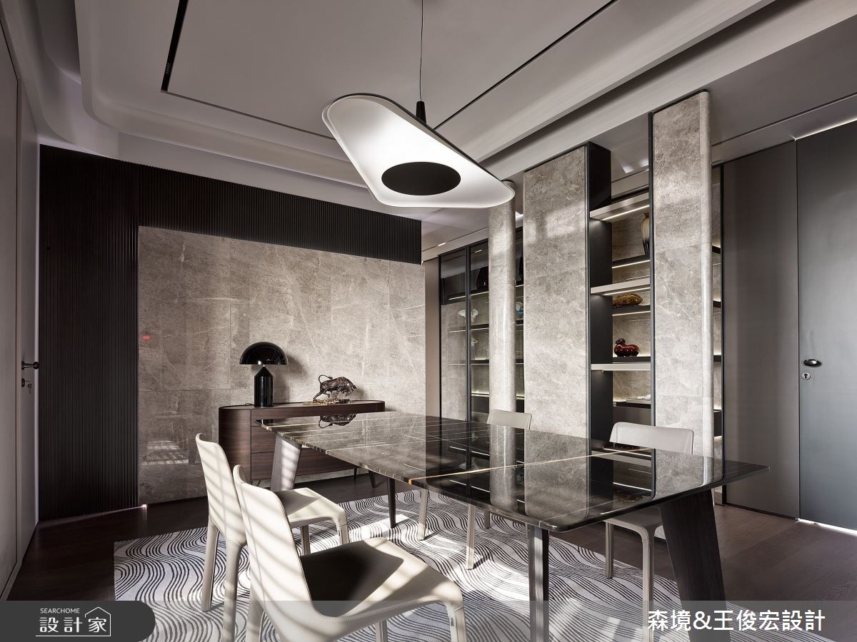 由森境+王俊宏設計精心規劃的110坪三房住宅空間,家庭成員一共有3位大人、1位小孩。因應屋主需求,設計師運用現代風作為主軸,搭配乳膠漆、不鏽鋼、烤漆、大理石、灰玻,打造全家人的夢想家居。
