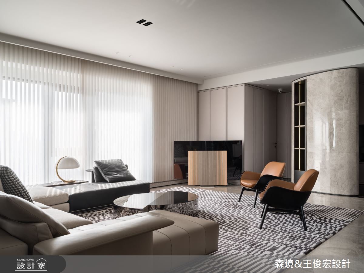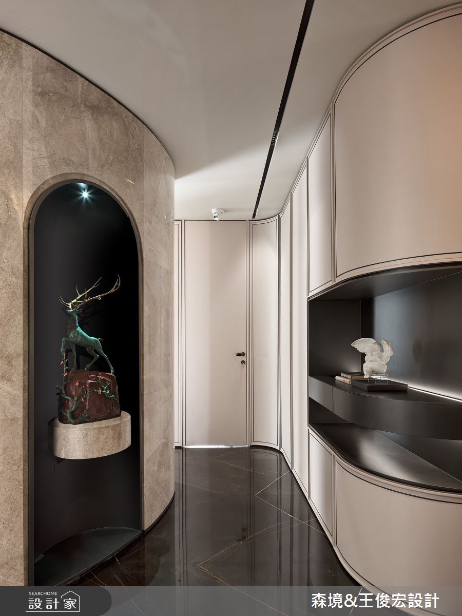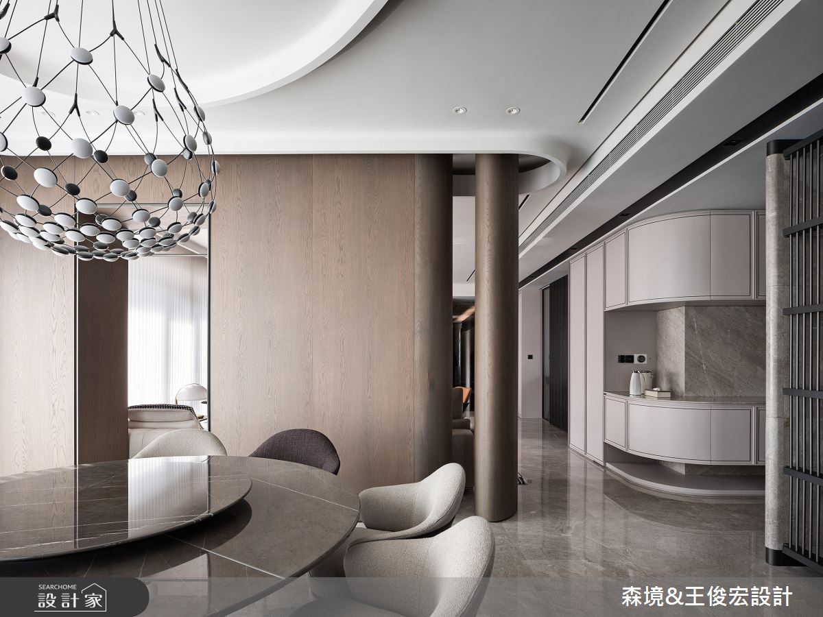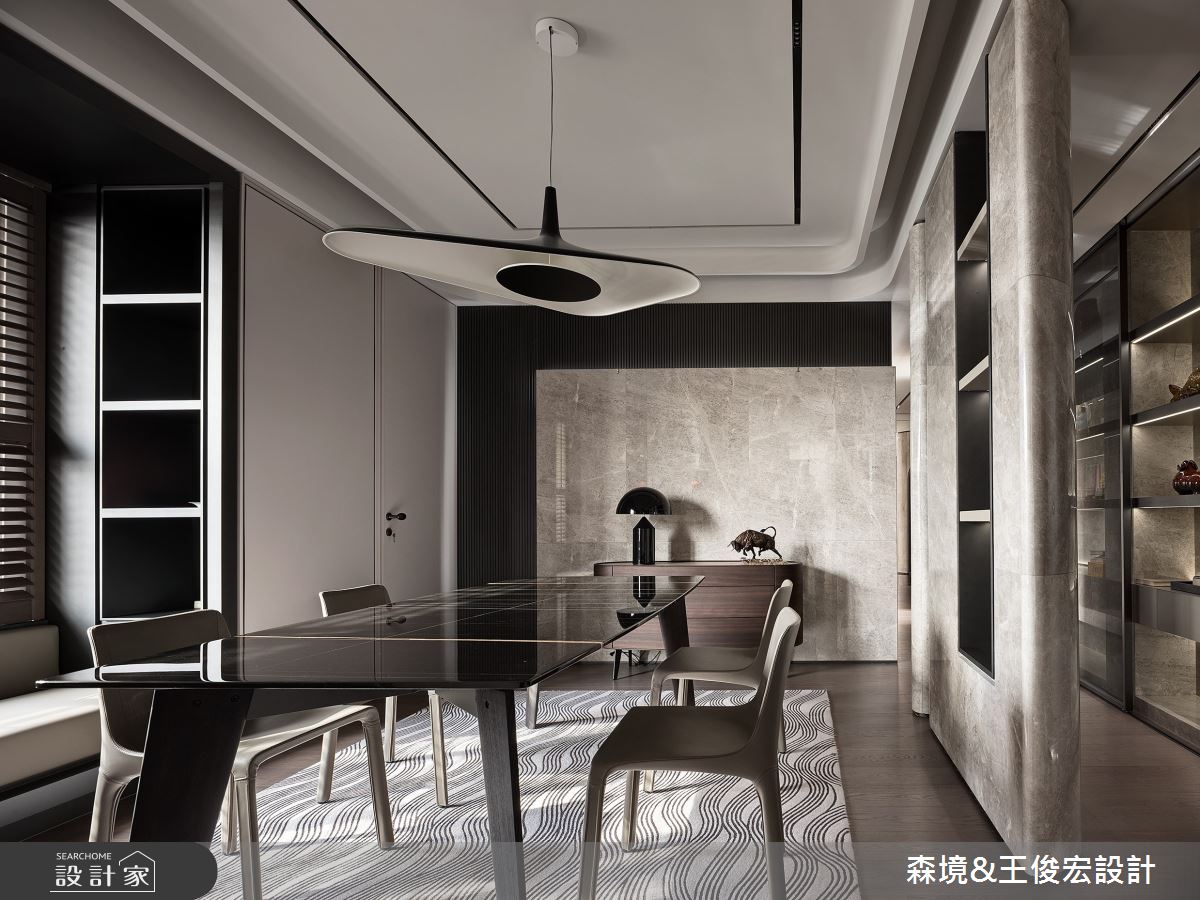 由森境+王俊宏設計精心規劃的110坪三房住宅空間,家庭成員一共有3位大人、1位小孩。因應屋主需求,設計師運用現代風作為主軸,搭配乳膠漆、不鏽鋼、烤漆、大理石、灰玻,打造全家人的夢想家居。