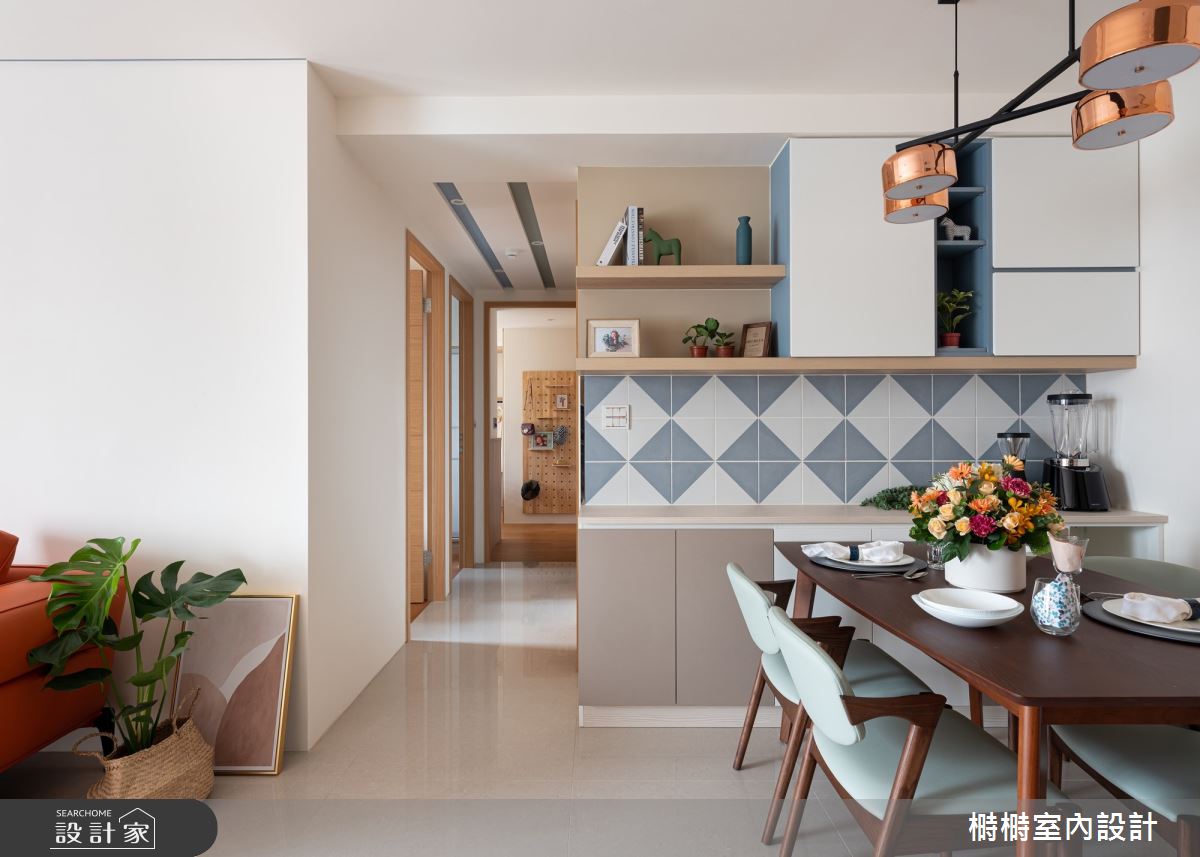 來自榯榯室內設計的25坪混搭風住宅案,屋主一家人共有2位大人、2位長輩,是一間單層中古屋(5~15年)的四房格局,設計師藉由建材以乳膠漆、花磚、水泥漆、超耐磨木地板、鐵件、茶鏡、木作貼皮、系統板材、人造石、藝術玻璃的搭配應用,實現一家人的理想生活。