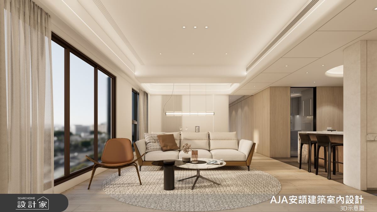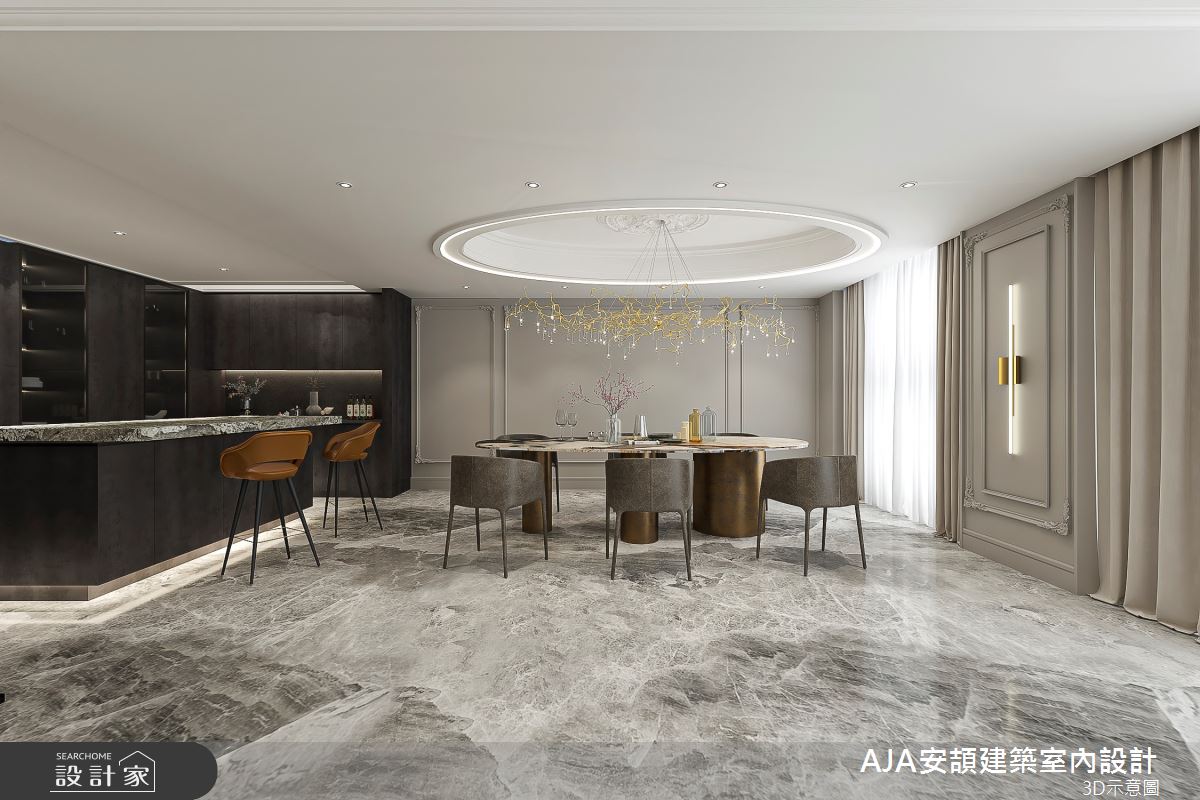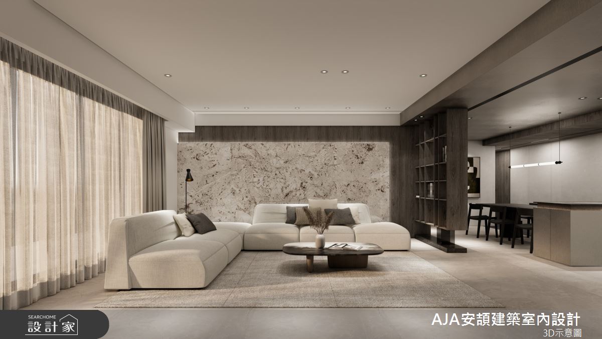 來自AJA安頡建築室內設計的100坪飯店風住宅案,屋主一家人共有2位大人,是一間單層新成屋(5年以下)的兩房格局,設計師藉由建材以烤漆、石材、大板磚、鍍鈦的搭配應用,實現一家人的理想生活。