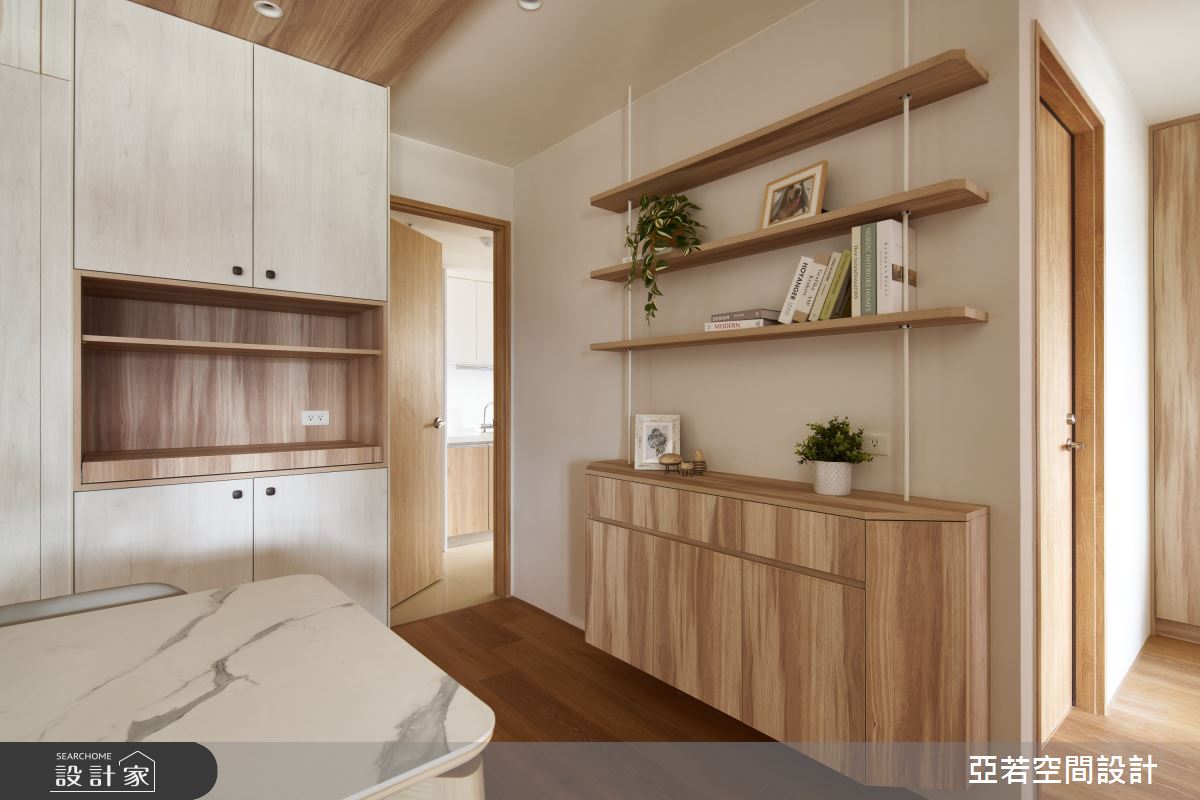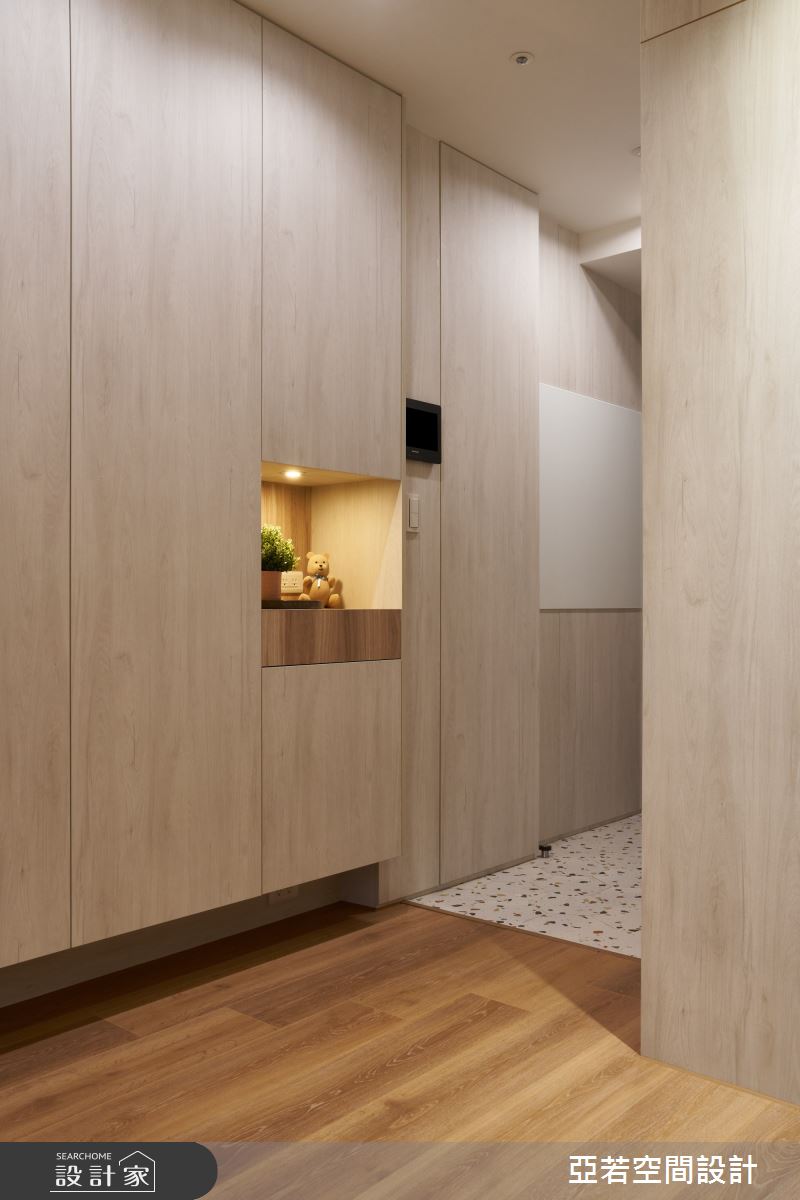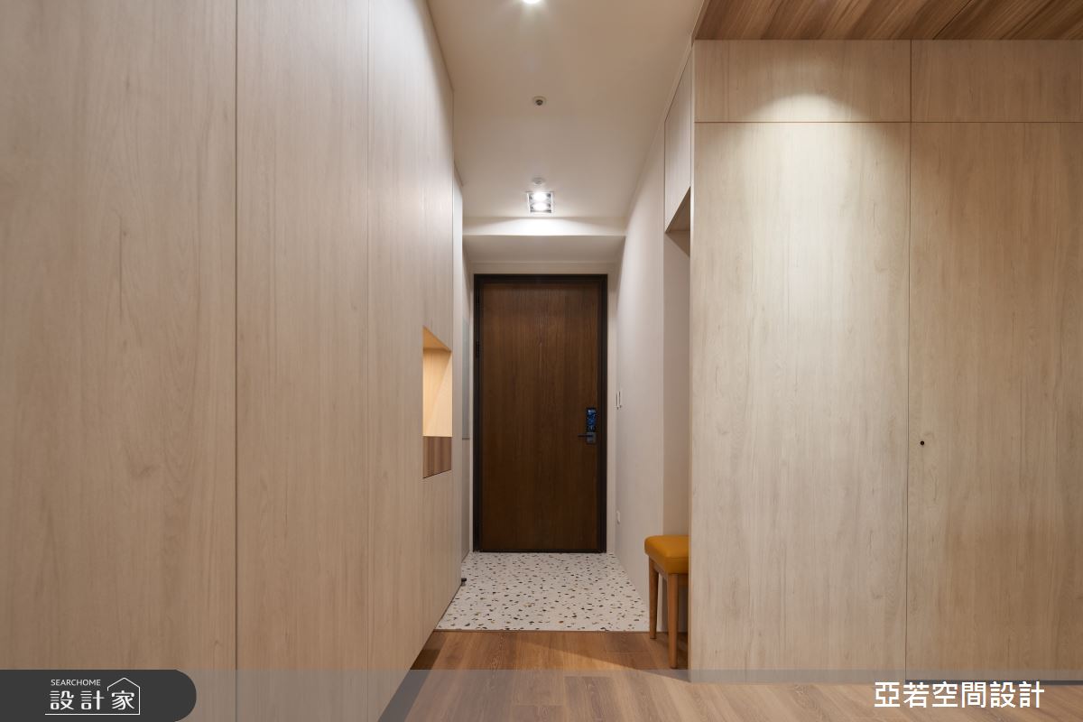 來自亞若設計有限公司的25坪北歐風住宅案,屋主一家人共有2位大人、2位小孩,是一間單層預售屋的三房格局,設計師藉由建材以木地板、系統櫃、乳膠漆、美耐板的搭配應用,實現一家人的理想生活。