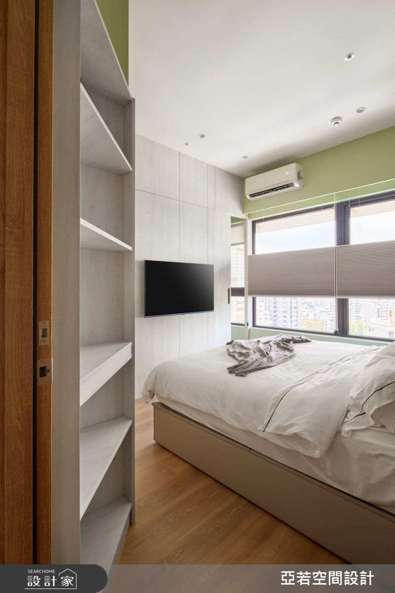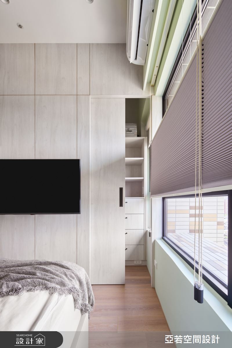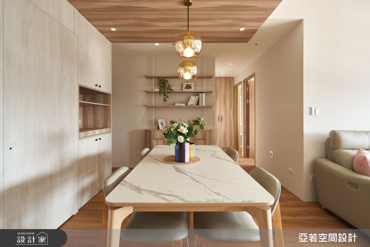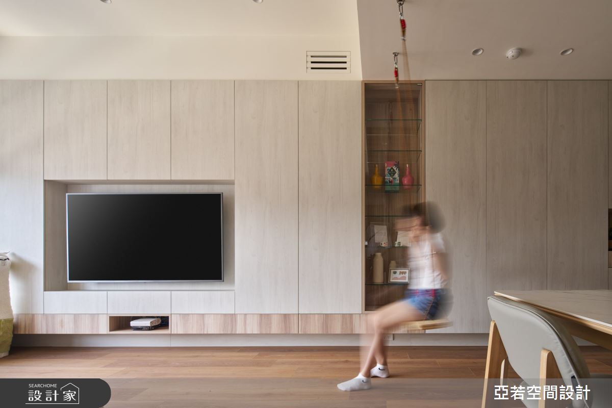 來自亞若設計有限公司的25坪北歐風住宅案,屋主一家人共有2位大人、2位小孩,是一間單層預售屋的三房格局,設計師藉由建材以木地板、系統櫃、乳膠漆、美耐板的搭配應用,實現一家人的理想生活。