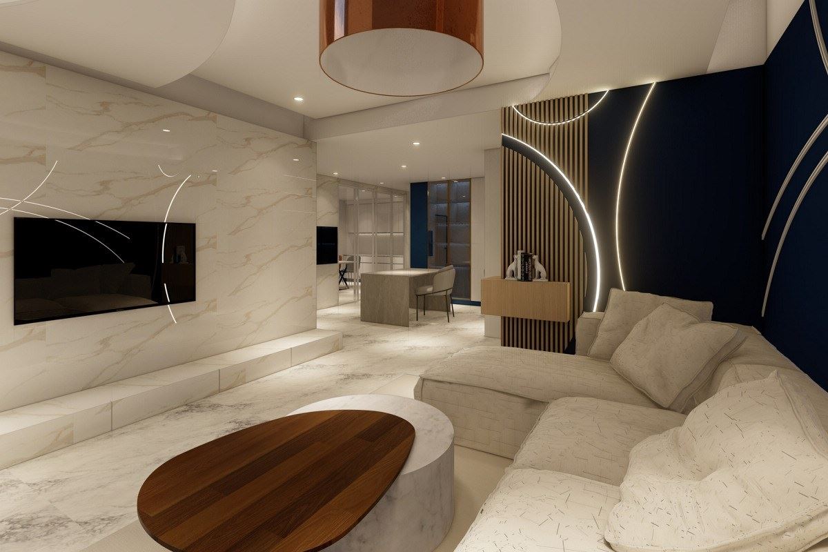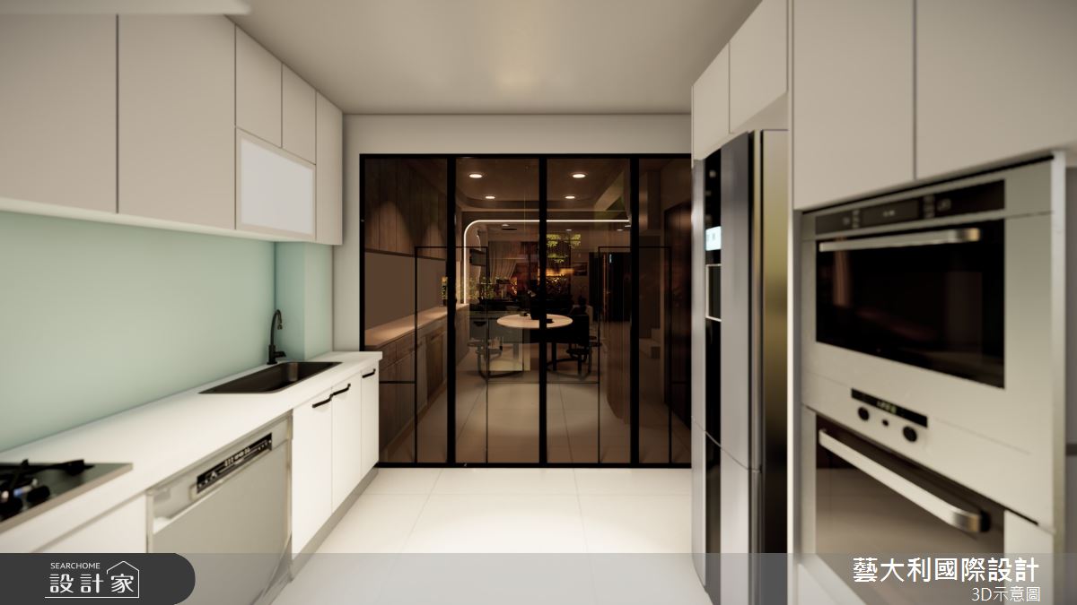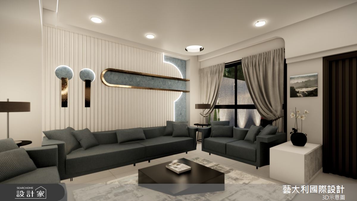 由藝大利國際設計精心規劃的100坪五房住宅空間,家庭成員一共有5位大人。因應屋主需求,設計師運用現代風作為主軸,搭配水泥漆、鐵件、茶玻、烤玻、烤漆、系統板材、人造石、線板,打造全家人的夢想家居。