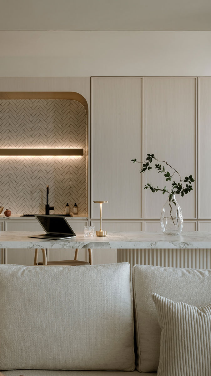 這間 45 坪的簡約風居所,是兩位屋主與兩隻毛孩子共同生活的溫暖基地。設計師在理性清晰的空間架構中,融入柔潤的弧形量體,在俐落簡約之中仍保有......