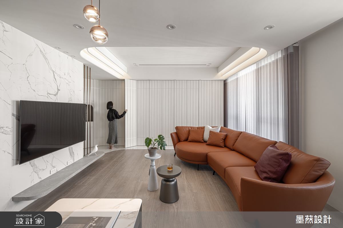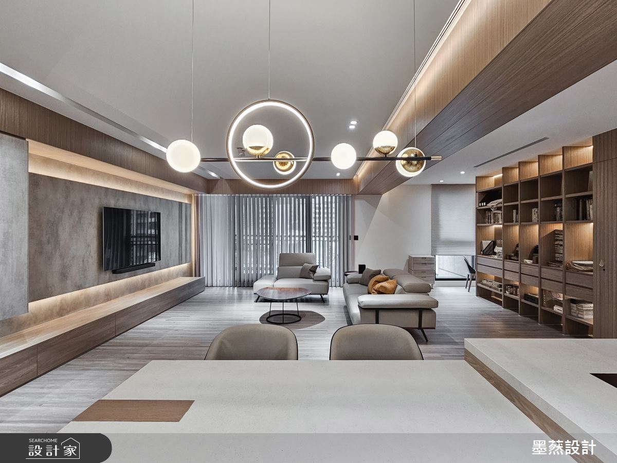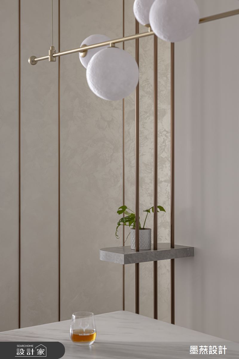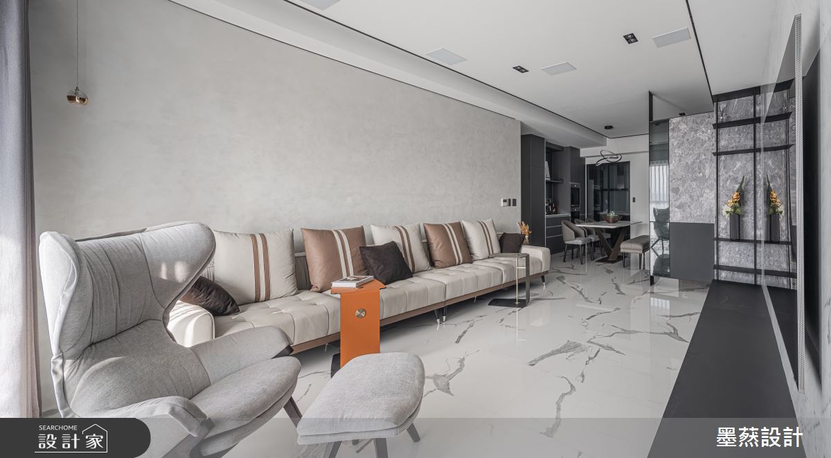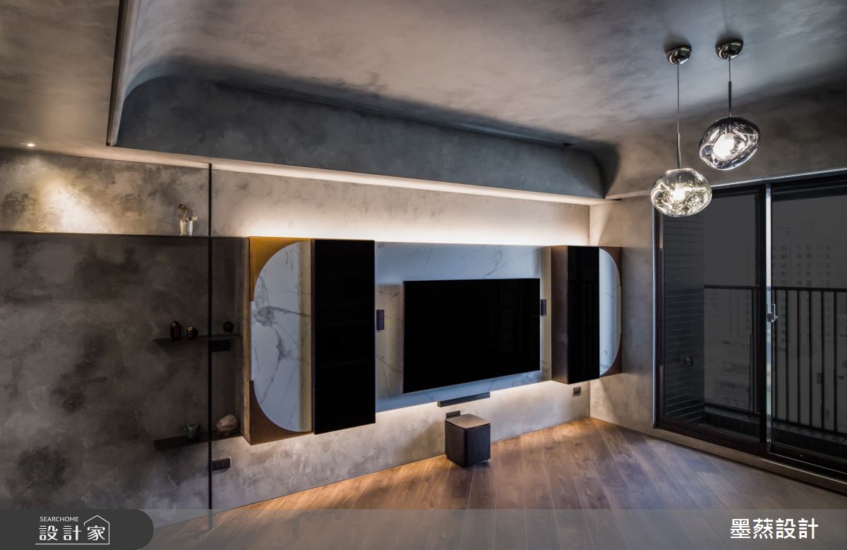 來自墨䔳室內裝修設計有限公司的28坪現代風住宅案,屋主一家人共有2位大人,是一間單層新成屋(5年以下)的兩房格局,設計師藉由建材以鐵件、義大利薄板、特殊塗料、造型壁板、鍍鈦的搭配應用,實現一家人的理想生活。