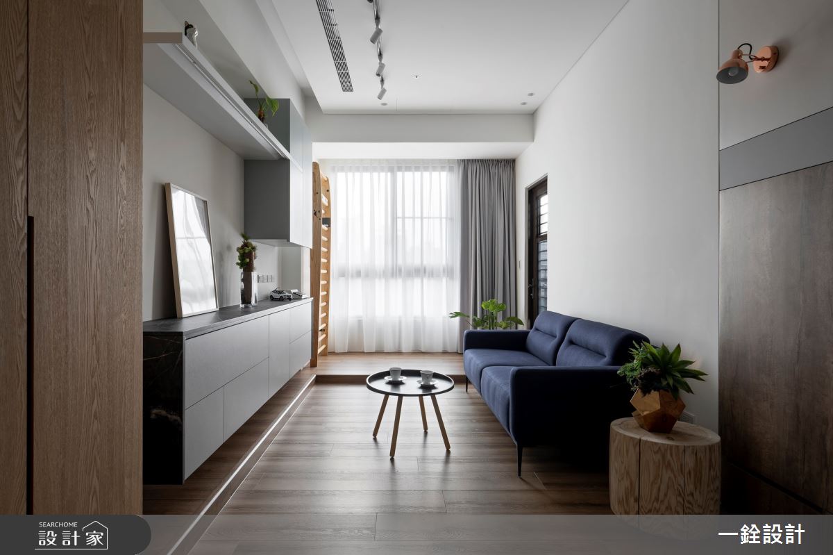 來自一銓室內裝修設計的20坪現代風住宅案,屋主一家人共有1位大人,是一間單層新成屋(5年以下)的兩房格局,設計師藉由建材以木地板、灰鏡、木作貼皮、鋼刷木皮、系統板材、軌道燈、噴漆、隱藏式餐桌的搭配應用,實現一家人的理想生活。