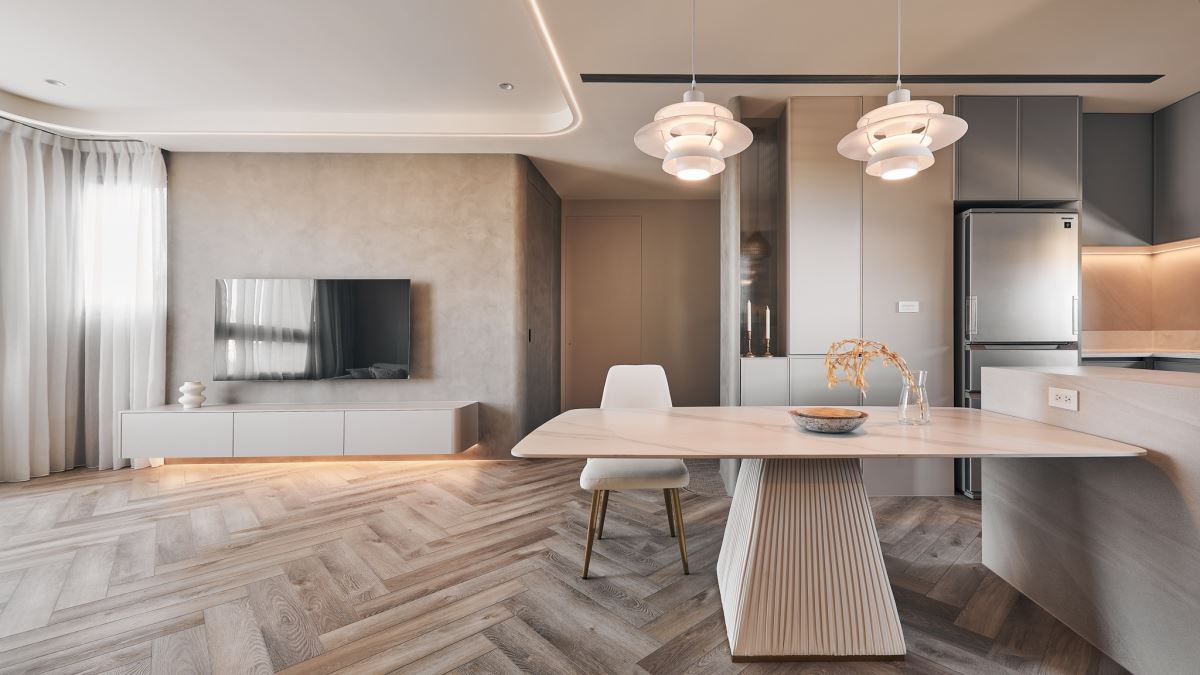 優雅溫柔的奶茶色該如何混搭調配呢?舒皓設計師藉由描繪一家四口的日常輪廓,增加實用機能面、足量收納,營造兼具舒展雅致的輕盈居所。在空間上,融合流暢的造型、微蘊的燈光,挹注優雅溫柔的奶......