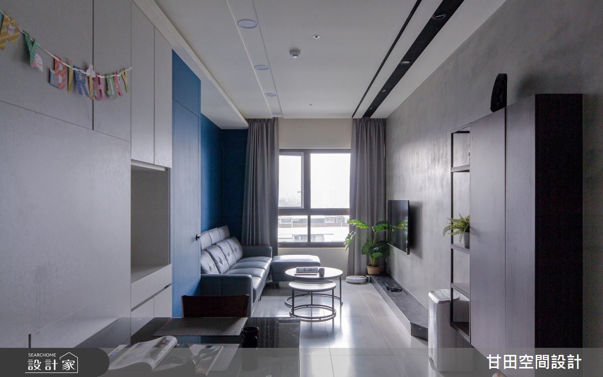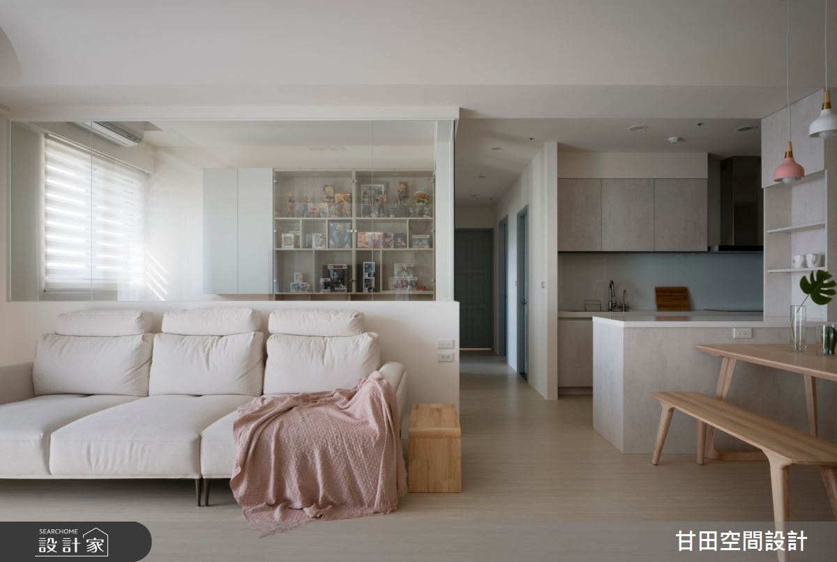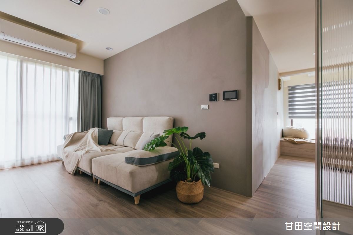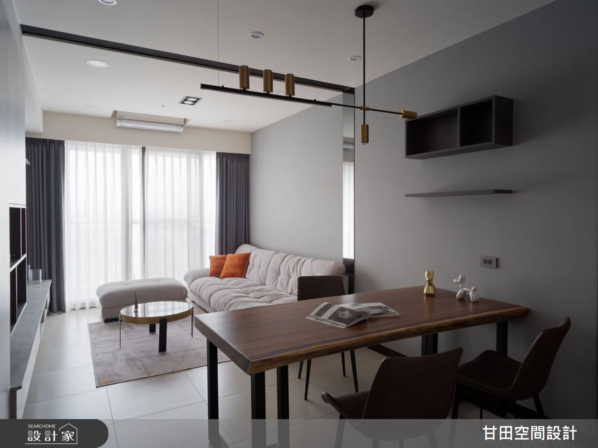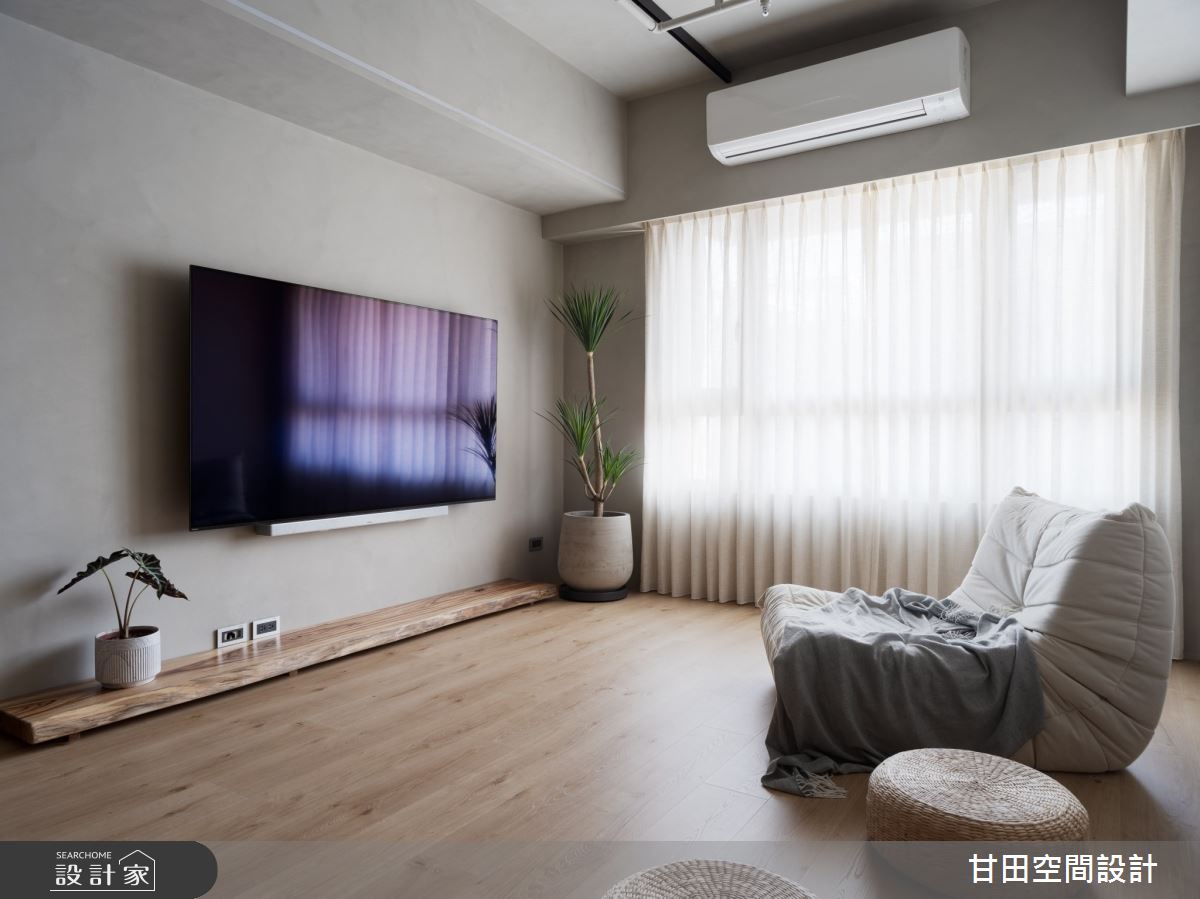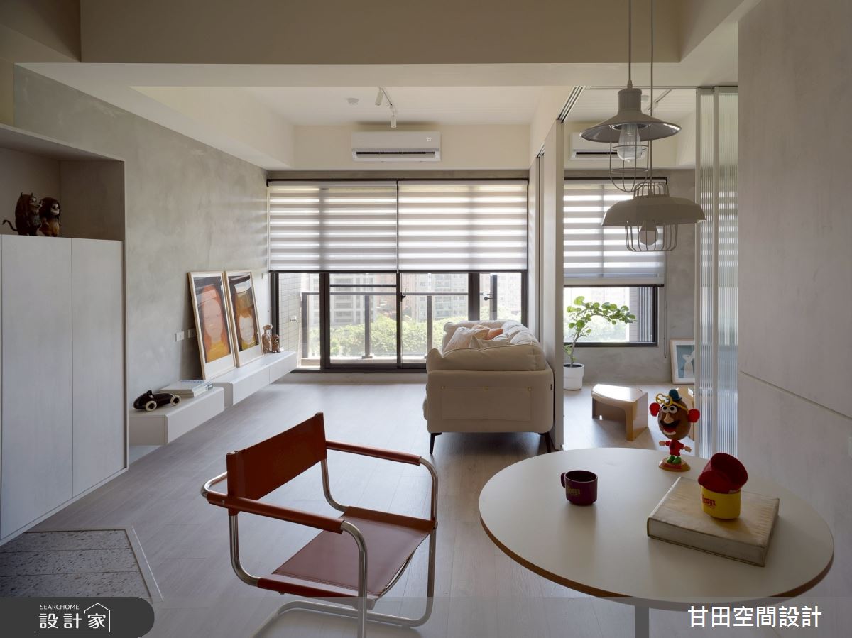 來自甘田空間設計的22坪日式無印風住宅案,屋主一家人共有2位大人,是一間單層新成屋(5年以下)的兩房格局,設計師藉由建材以油漆、乳膠漆、超耐磨木地板、不鏽鋼、木作貼皮、鋼刷木皮、軌道燈、仿清水模塗料、線燈、木格柵、磁吸軌道的搭配應用,實現一家人的理想生活。