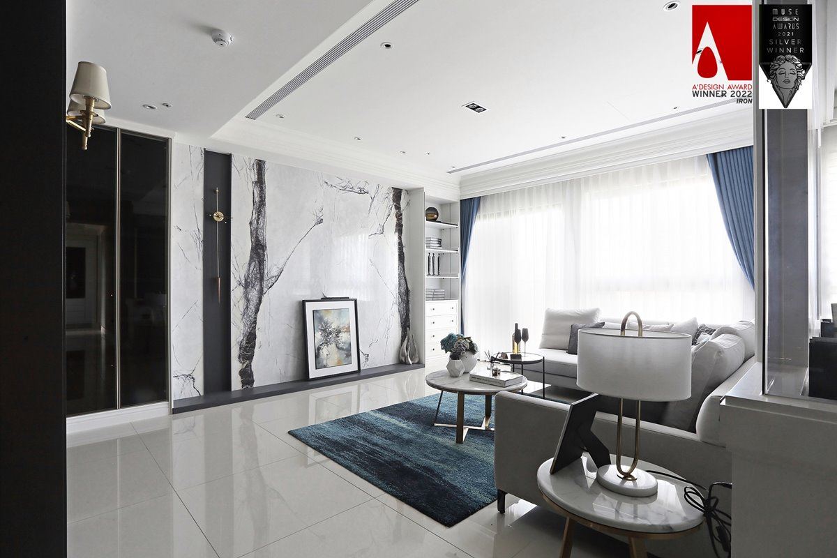 36坪白色現代風精品宅邸,客餐廳書房開放格局與大理石質感美學