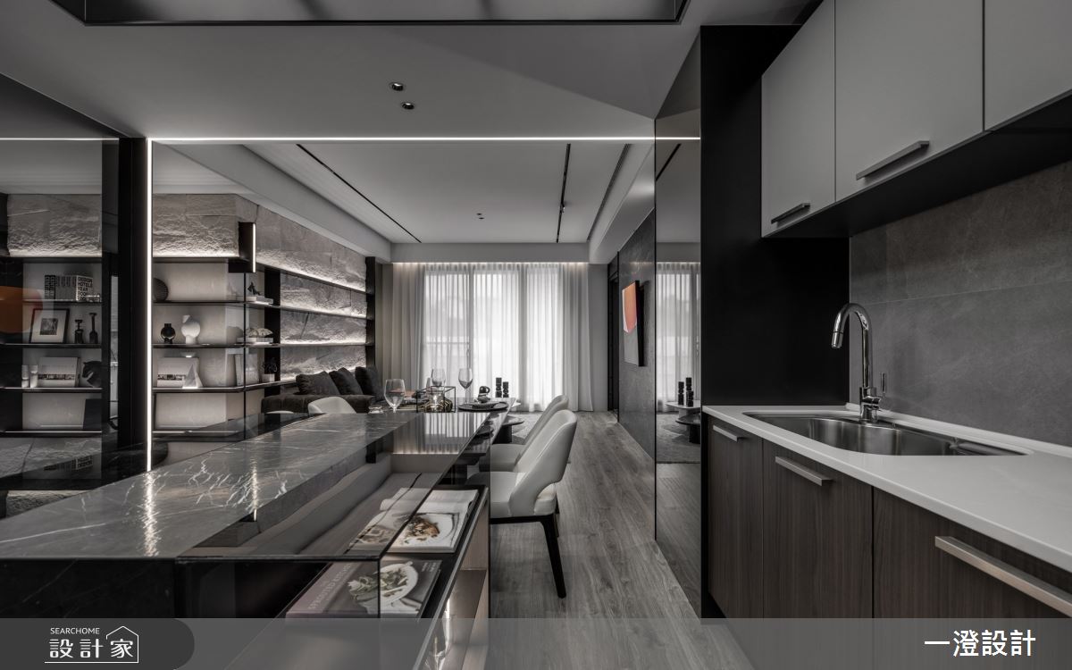 本案為一澄設計事業的40坪現代簡約風設計作品,格局為四房的居住空間。全室建材的搭配,應用天然石材、超耐磨木地板、造型石皮、天然木皮染色、灰鏡、灰玻璃、皮革、大板磁磚、金屬烤漆、透光雲石、地毯,展現溫馨的居家氛圍。