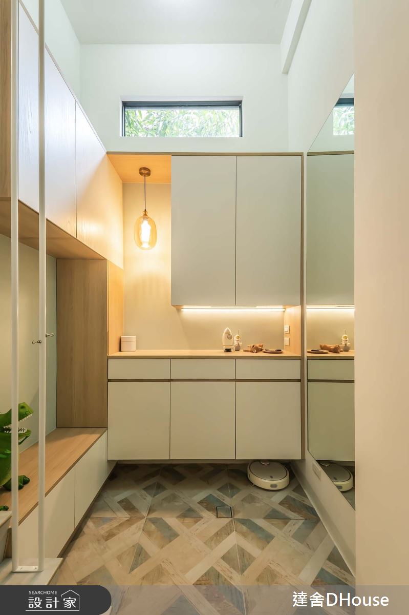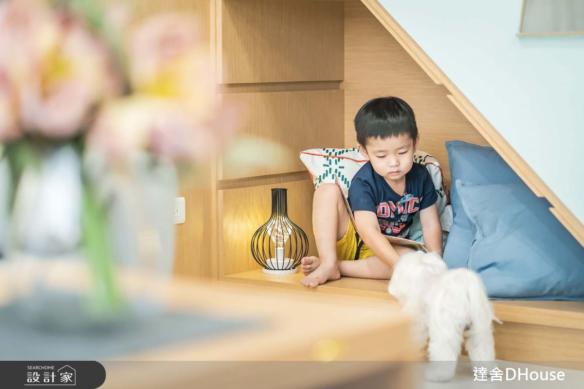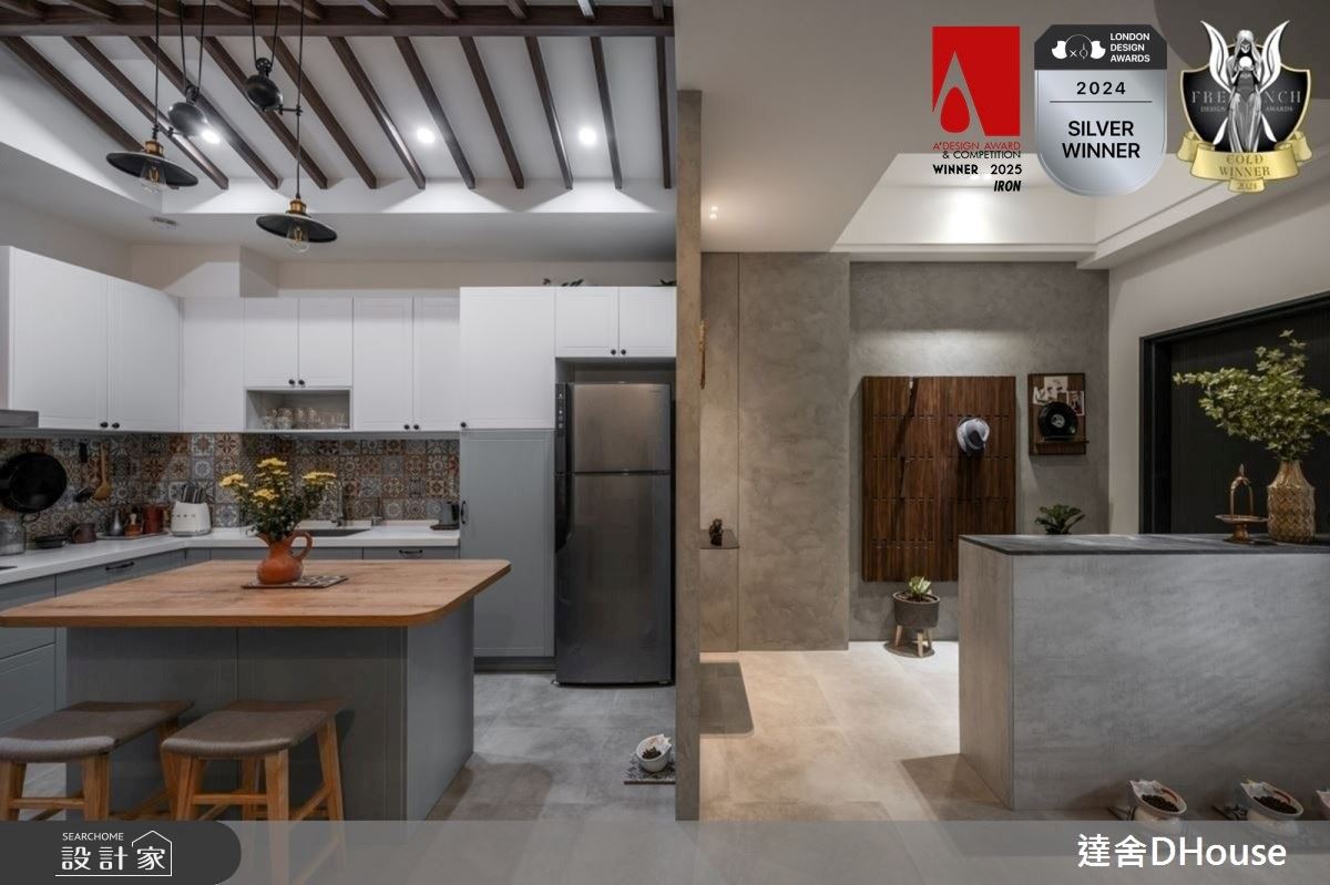 圓形普遍存在於我們的生活周遭,只要計算這些圓的周長與半徑的比值,永遠會得到同樣的數值π。室內設計中,圓周率可以用於創造流暢的線條和曲面,營造一種優雅和現代的氛圍。實木紋弧形天花板與弧型吊扇、採用圓形設計的沙發相呼應,營造和諧的整體感,柔和了傳統長型街屋的狹長格局。R角造型檯面、桌面和弧型櫃體門片設計,則為居住空間創造安全、舒適的生活體驗。引光及通風,是在翻新過程中,另外兩個讓長型街屋變為宜居好宅的設計重點,透過格局的調整,將生活空間以開放式、半開放式格局做規劃,並搭配前、後窗與梯間天井、與隔間各式造型天窗,充分讓自然光線能夠灑入,主要牆面同時搭配運用清新光彩的特殊漆與玻璃、格柵等透光材料,一同將空間映照的新穎明亮。家就像一個圓,無論您走到哪裡,都可以感受到家的溫暖,就像圓周率一樣,它將一直延續下去,陪伴著每一代人成長。圖文提供_達舍創研所