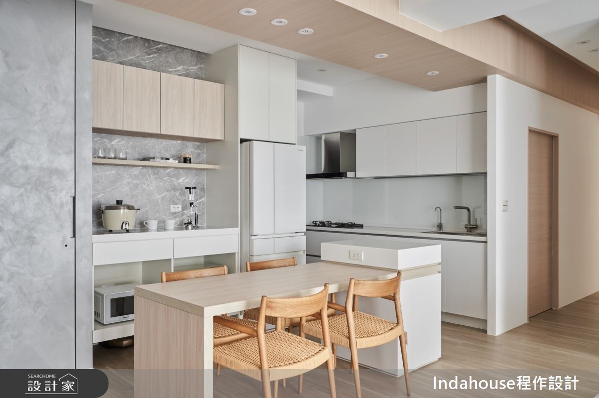 本案為Indahouse程作設計的28坪日式無印風中古屋(5~15年)設計作品,格局為單層三房的居住空間。居住成員包含2位大人。全室建材的搭配,應用超耐磨木地板、木作貼皮、系統板材、人造石、藝術塗料、鏡面,展現溫馨的居家氛圍。