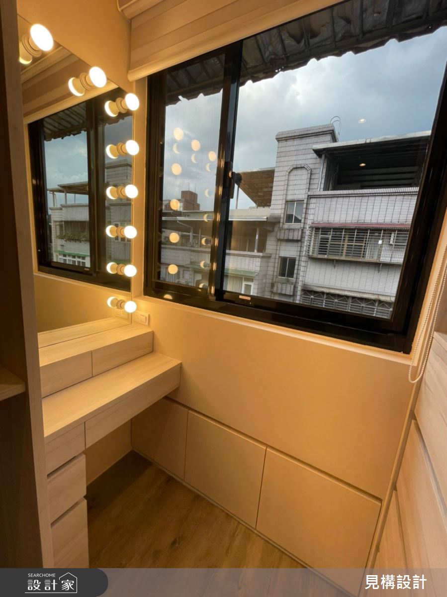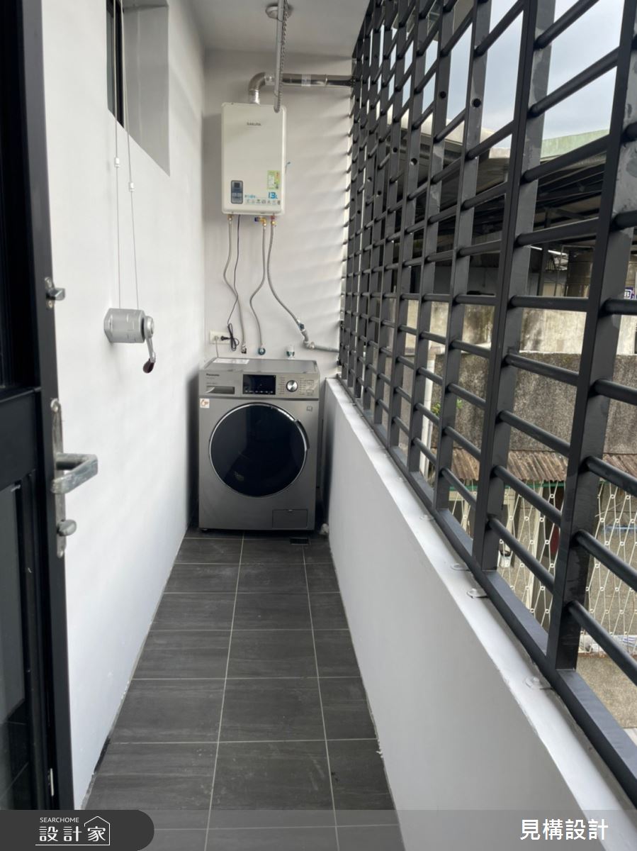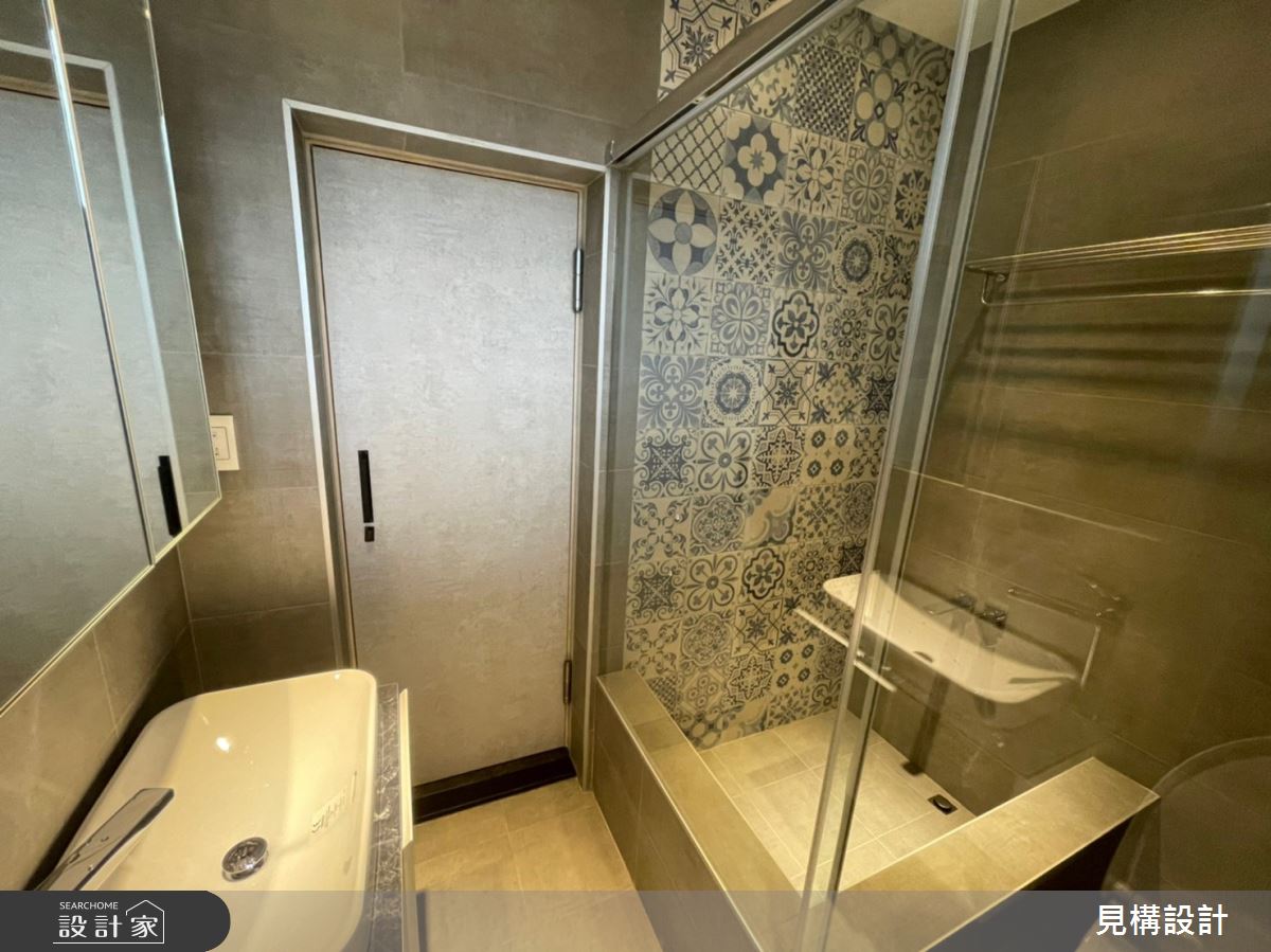 見構設計實業有限公司以六角磚/蜂巢磚、水泥漆、SPC地板、鐵件、木作貼皮、磁磚、人造石、軌道燈、實木的搭配應用,呈現工業風居家氛圍,將此間30坪、兩房、單層、老屋(31~40年)打造成舒適愜意的家庭空間,完成2位大人、1位小孩全家人的夢想之居。
