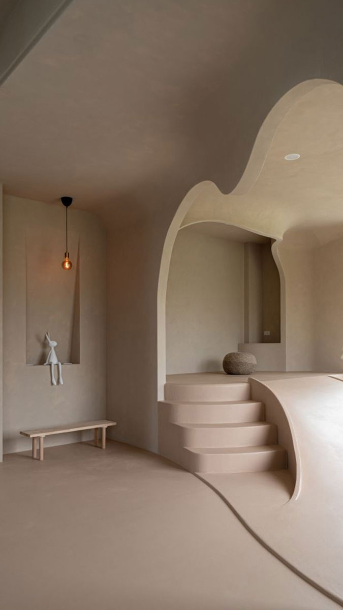 解構空間設計以乳膠漆、鐵道磚、六角磚/蜂巢磚、花磚、超耐磨木地板、木作貼皮、系統板材、樂土、賽麗石、七岩藝術塗料、Spiver義大利藝術塗料的搭配應用,呈現混搭風的風格氣息,將此間90坪新成屋(5年以下)優雅詮釋成舒適愜意的商業空間。